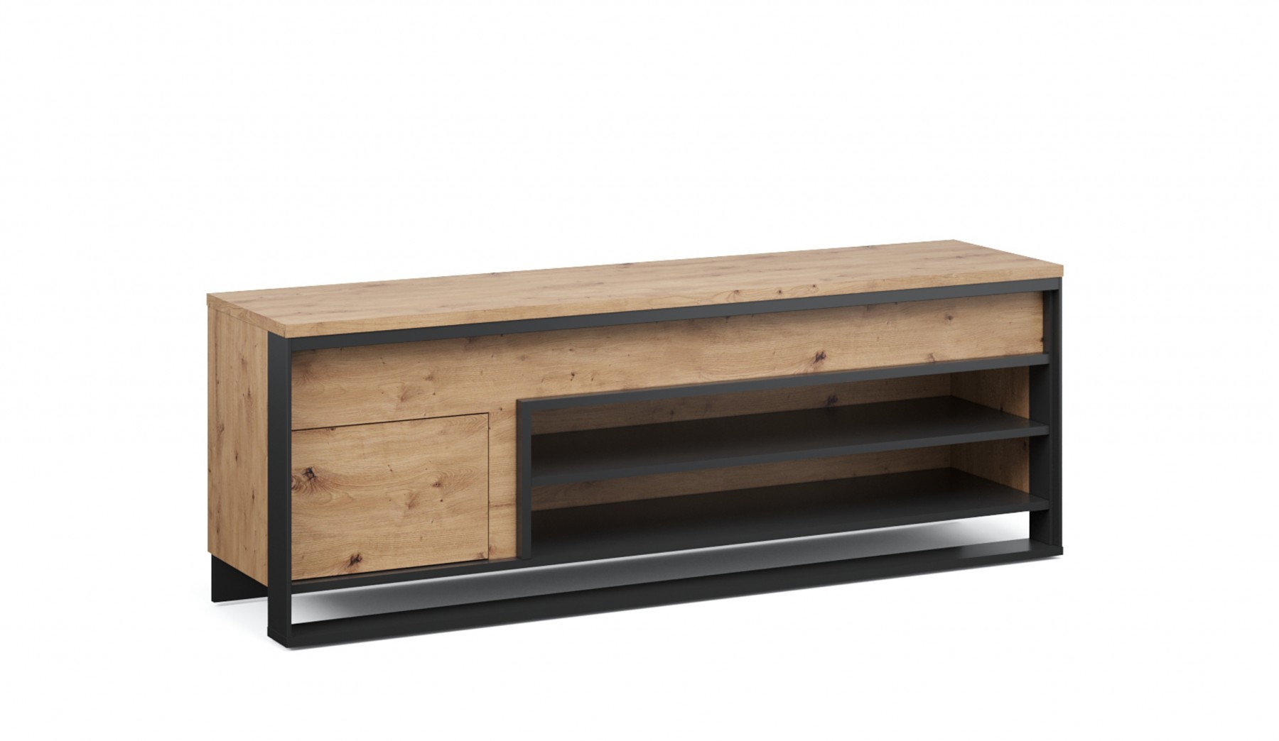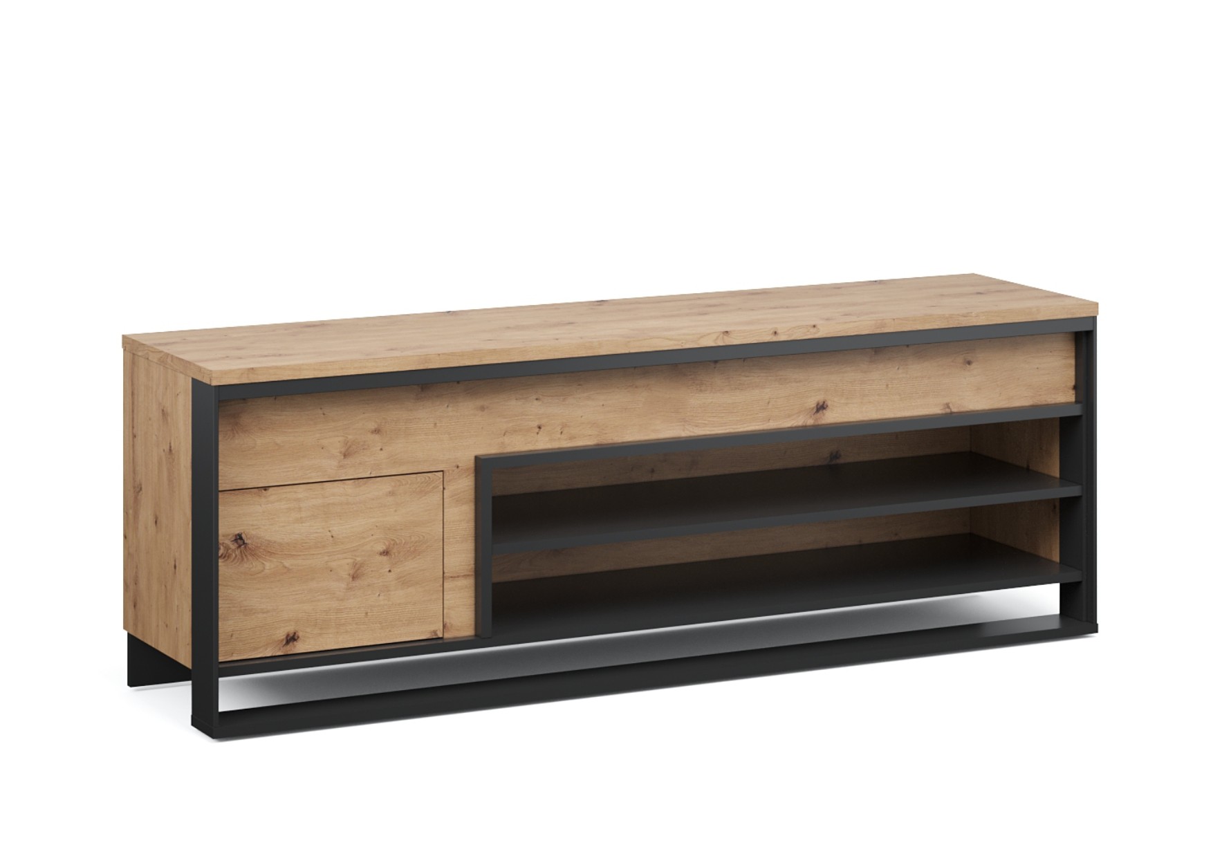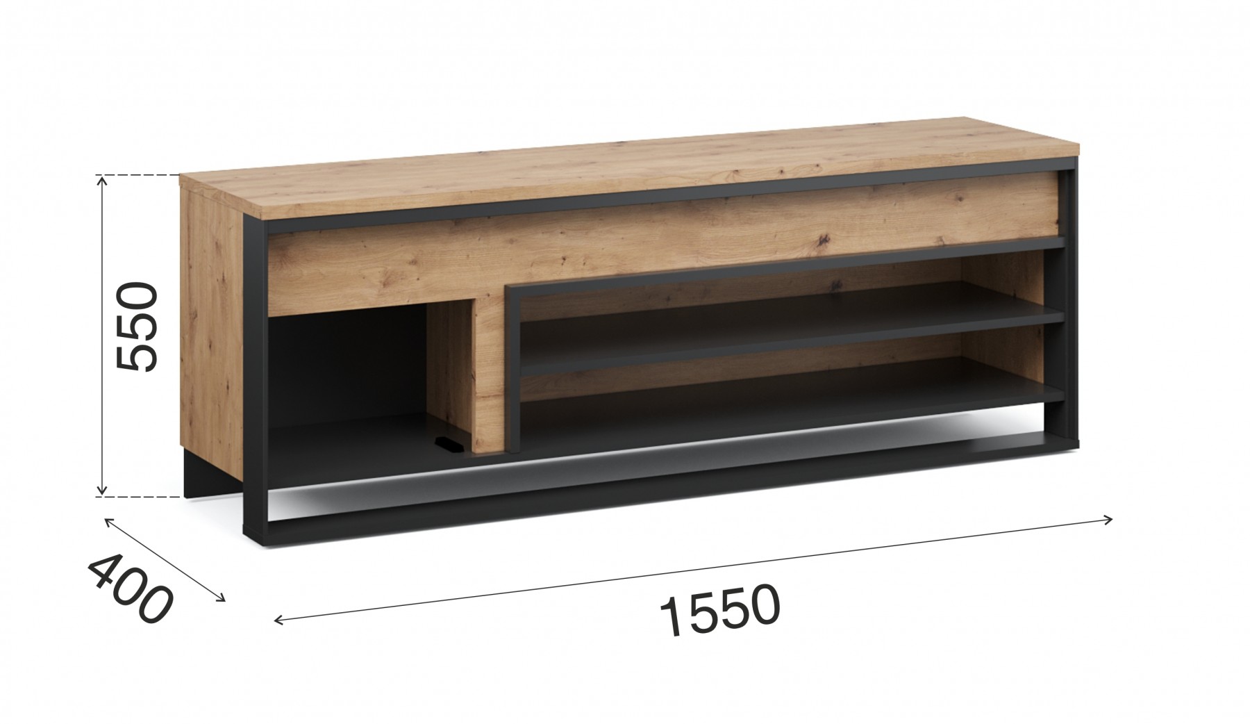 Стильная тумба под телевизор Тринити сочетает в себе современный дизайн и функциональность. Поверхность с рельефной древесной текстурой придаёт ей тёплый и уютный вид, а профиль МДФ с имитацией металла по периметру подчёркивает индустриальный стиль. Тумба имеет просторную открытую нишу с двумя полками для размещения техники, игровых приставок, книг или декоративных предметов. Утолщённый верх с рельефной кромкой добавляет визуальной прочности и подходит для установки телевизора до 65 дюймов. Компактные габариты и минималистичный стиль делают эту тумбу универсальным решением для гостиной, спальни или зоны отдыха.