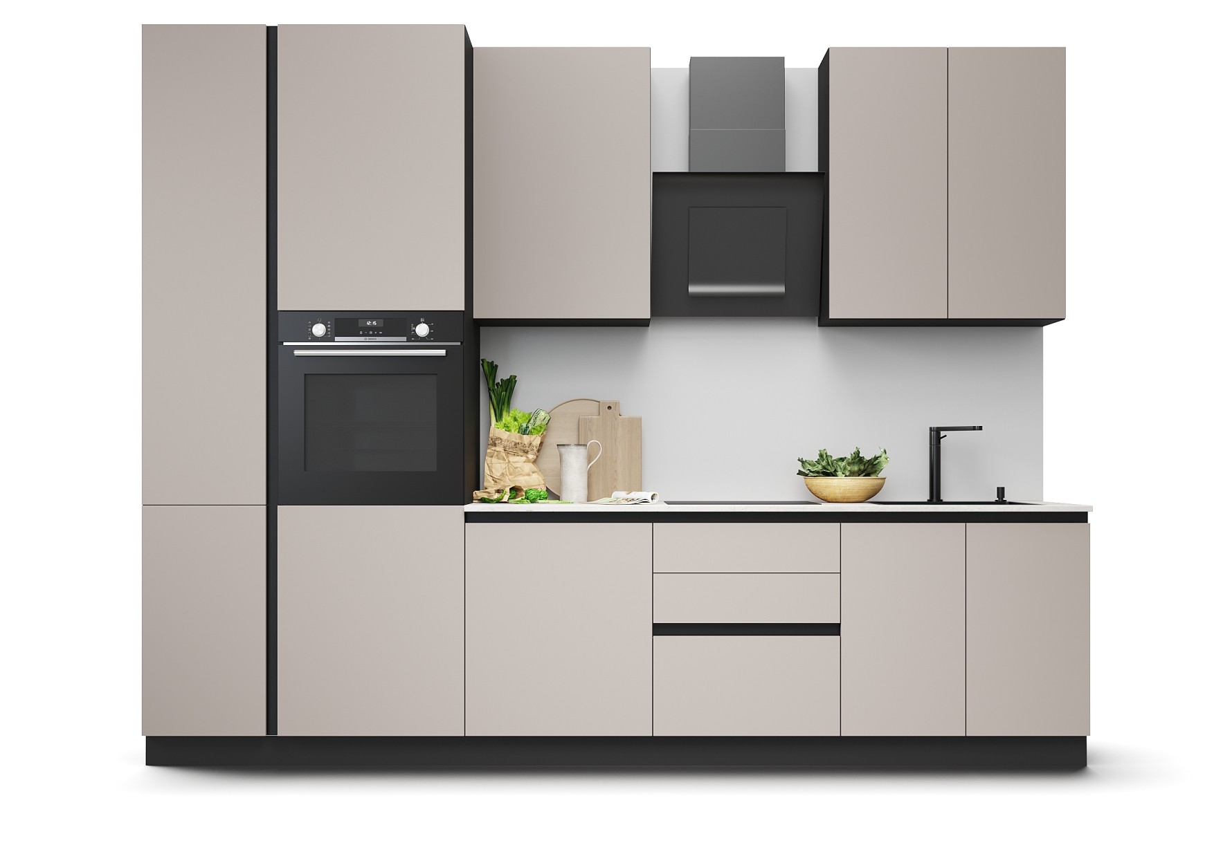 В комплект входит Авеню В60/960, В80/960, Н60 1д, Н60 3ящ (FE), Н80м, П40 2д+60 3д высокий, профиль GOLA L-образный м/п (2 шт.)