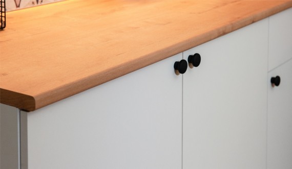 • Компактные и лаконичные ручки-кнопки удобны в использовании – убрать загрязнения с фасадов значительно проще чем с другими видами ручек