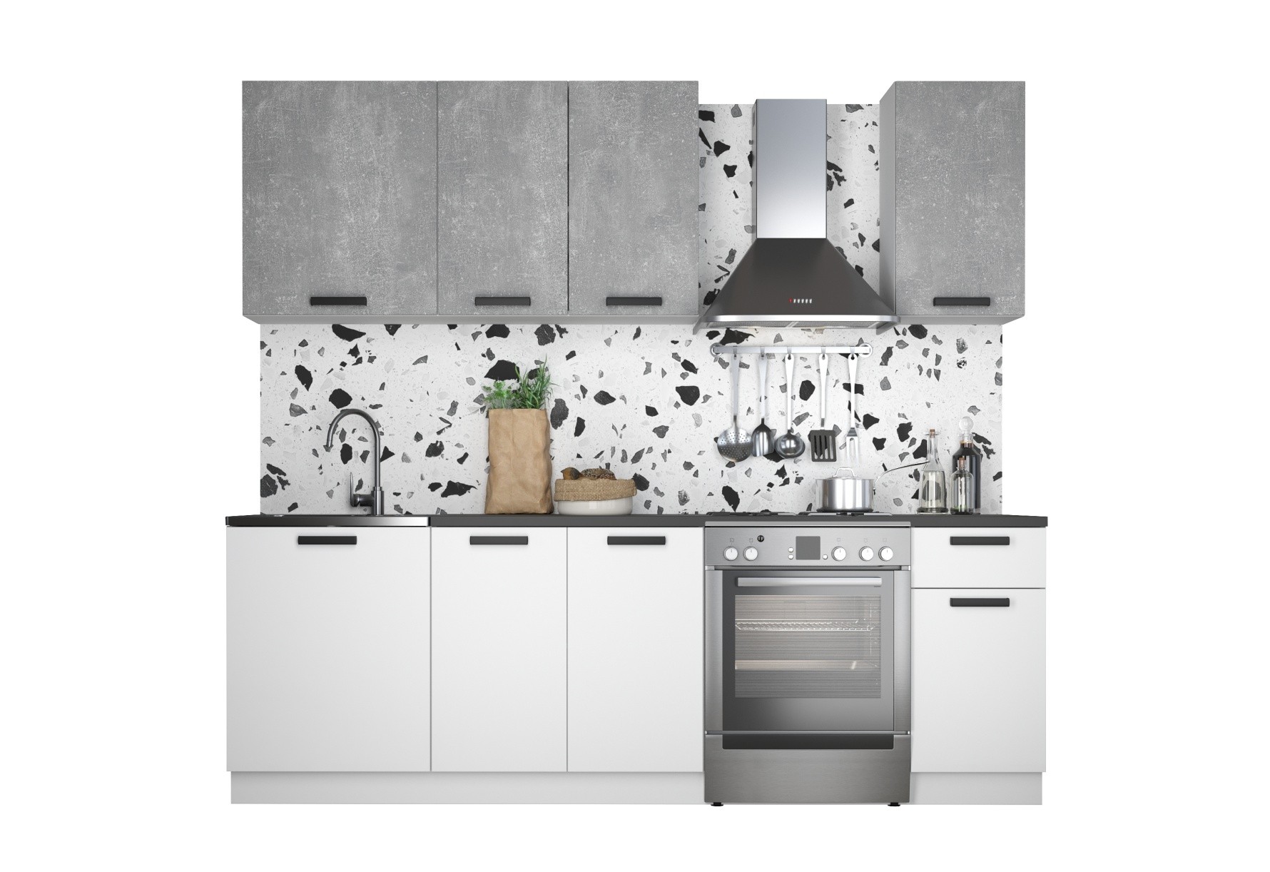Функциональный готовый комплект модулей «Ника» подойдет для небольшой кухни в стиле сканди, лофт, экоминимализм. Лаконичные фасады ЛДСП в актуальных декорах природных оттенков в сочетании с классическим белым цветом создают спокойную гармоничную атмосферу, зрительно увеличивают пространство. Широкие черные ручки-скобы с бархатистым покрытием Soft-touch удобны в использовании и придают своеобразный колорит и характер кухне. Кухню при необходимости можно доукомплектовать модулями под вытяжку и духовку. Столешница в комплект не входит.