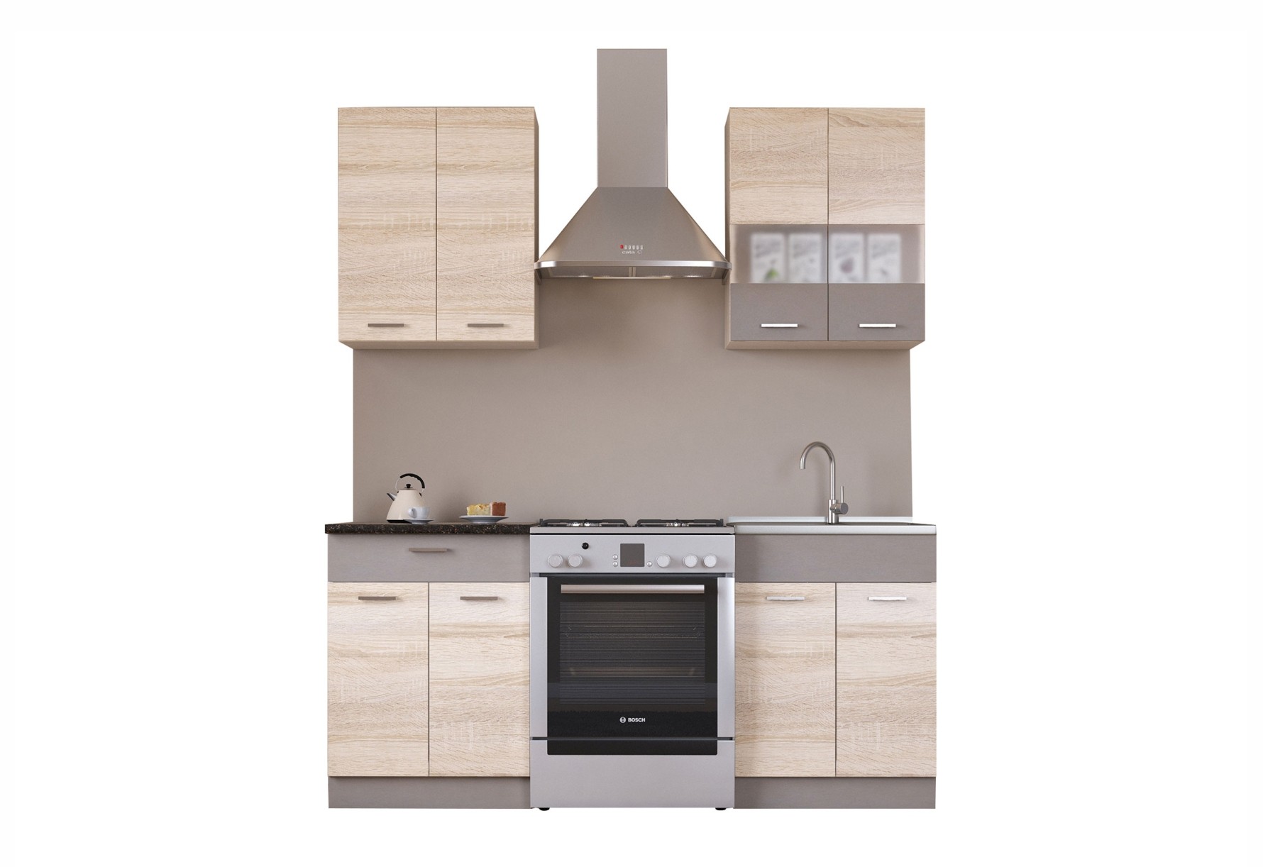 Кухня Николь специально разрабатывалась для создания интерьера студий (объединенное жилое и кухонное пространство) или для кухонь, совмещенных с гостиными. Поэтому и выбран один из самых распространенных сегодня цветов в мебели для жилых комнат - дуб сонома. Эта кухня гармонично впишется в пространство с другой жилой мебелью - шкафами, стеллажами, тумбами, столами и т.д. Широкий выбор сегментов модели Николь позволяет и вписать ее в небольшое помещение, и создать проект большой функциональной кухни. Дополнительную функциональность кухне придает то, что почти во всех нижних модулях есть выдвижные ящики. Наличие дополнительных опций дает возможность создать даже с небольшим бюджетом дизайнерский интерьер. Несмотря на невысокую стоимость, в этой кухне сохранены все экологические стандарты и использована качественная фурнитура. Столешница в комплект не входит, можно заказать у нас в размер Вашей кухни.