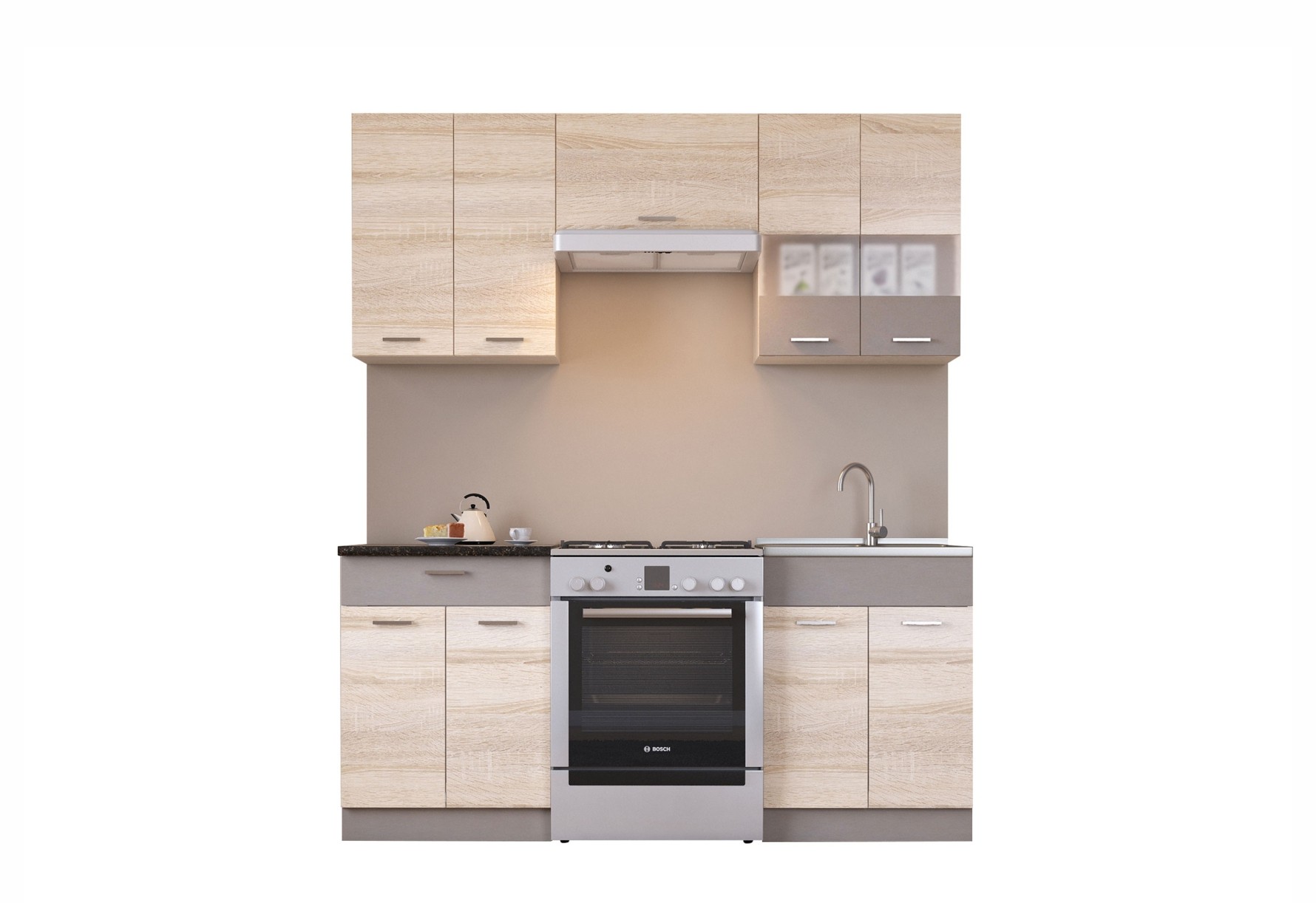 Кухня Николь специально разрабатывалась для создания интерьера студий (объединенное жилое и кухонное пространство) или для кухонь, совмещенных с гостиными. Поэтому и выбран один из самых распространенных сегодня цветов в мебели для жилых комнат - дуб сонома. Эта кухня гармонично впишется в пространство с другой жилой мебелью - шкафами, стеллажами, тумбами, столами и т.д. Широкий выбор сегментов модели Николь позволяет и вписать ее в небольшое помещение, и создать проект большой функциональной кухни. Дополнительную функциональность кухне придает то, что почти во всех нижних модулях есть выдвижные ящики. Наличие дополнительных опций дает возможность создать даже с небольшим бюджетом дизайнерский интерьер. Несмотря на невысокую стоимость, в этой кухне сохранены все экологические стандарты и использована качественная фурнитура. Столешница в комплект не входит, можно заказать у нас в размер Вашей кухни.