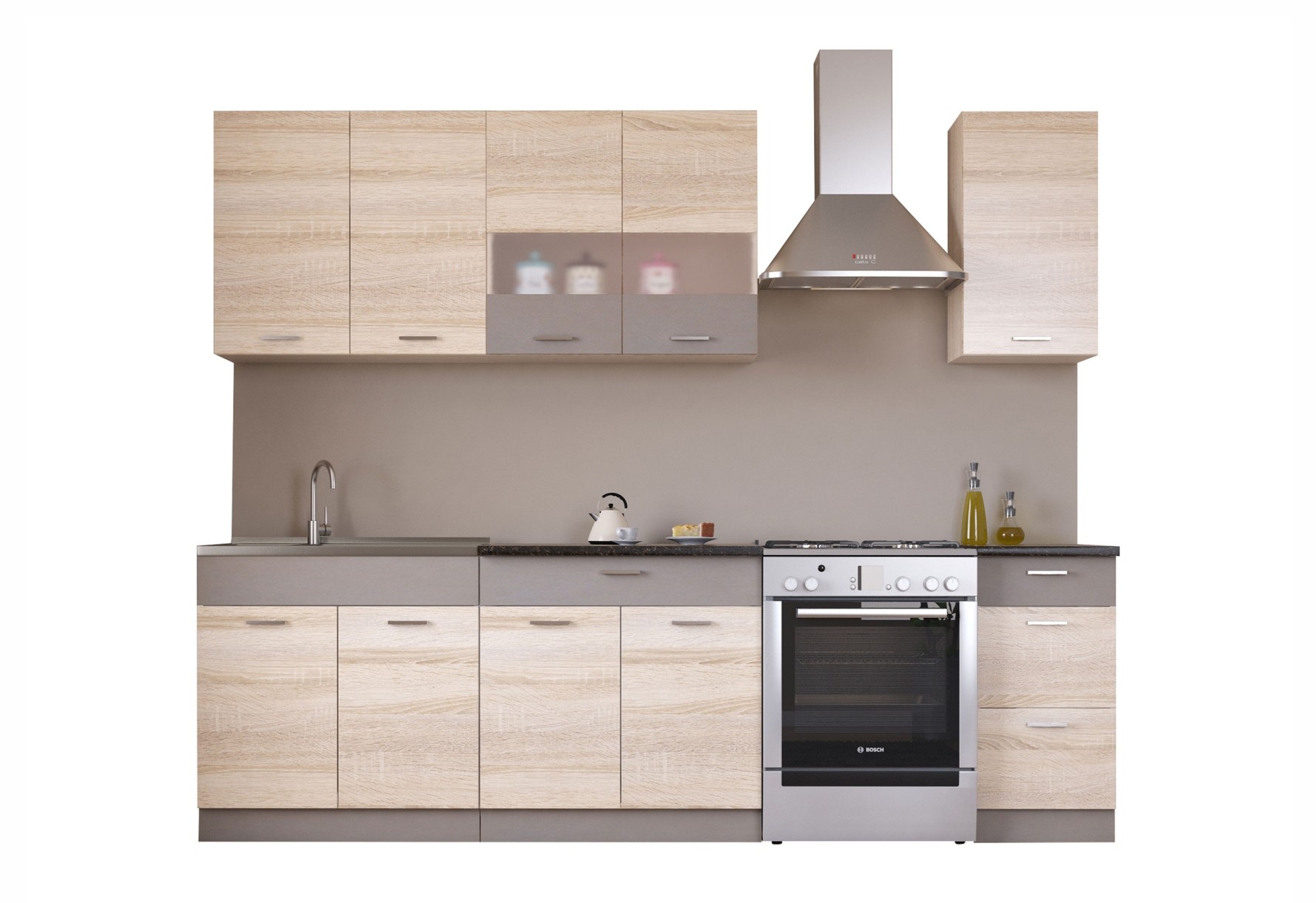 Кухня Николь специально разрабатывалась для создания интерьера студий (объединенное жилое и кухонное пространство) или для кухонь, совмещенных с гостиными. Поэтому и выбран один из самых распространенных сегодня цветов в мебели для жилых комнат - дуб сонома. Эта кухня гармонично впишется в пространство с другой жилой мебелью - шкафами, стеллажами, тумбами, столами и т.д. Широкий выбор сегментов модели Николь позволяет и вписать ее в небольшое помещение, и создать проект большой функциональной кухни. Дополнительную функциональность кухне придает то, что почти во всех нижних модулях есть выдвижные ящики. Наличие дополнительных опций дает возможность создать даже с небольшим бюджетом дизайнерский интерьер. Несмотря на невысокую стоимость, в этой кухне сохранены все экологические стандарты и использована качественная фурнитура. Столешница в комплект не входит, можно заказать у нас в размер Вашей кухни.