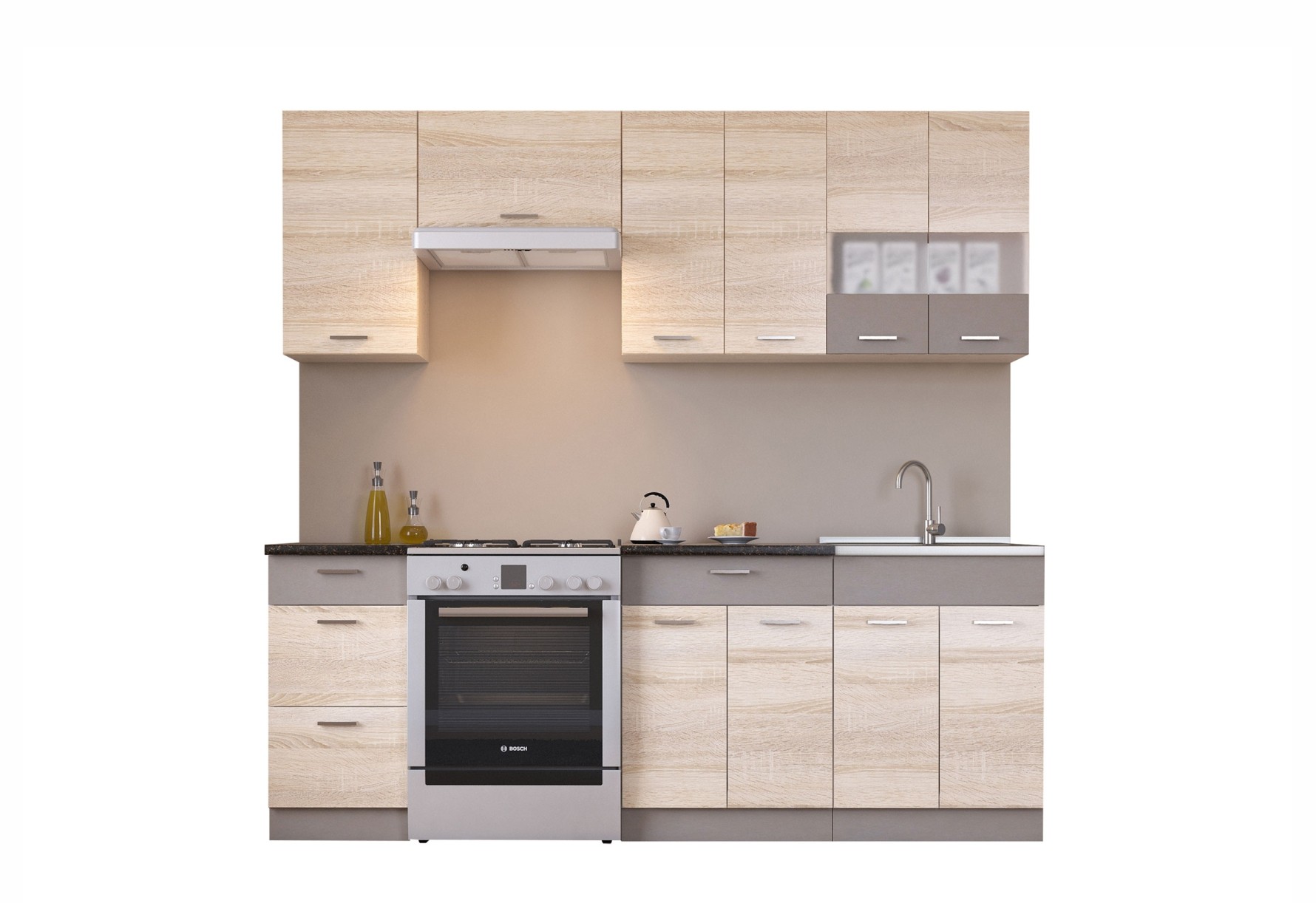 Кухня Николь специально разрабатывалась для создания интерьера студий (объединенное жилое и кухонное пространство) или для кухонь, совмещенных с гостиными. Поэтому и выбран один из самых распространенных сегодня цветов в мебели для жилых комнат - дуб сонома. Эта кухня гармонично впишется в пространство с другой жилой мебелью - шкафами, стеллажами, тумбами, столами и т.д. Широкий выбор сегментов модели Николь позволяет и вписать ее в небольшое помещение, и создать проект большой функциональной кухни. Дополнительную функциональность кухне придает то, что почти во всех нижних модулях есть выдвижные ящики. Наличие дополнительных опций дает возможность создать даже с небольшим бюджетом дизайнерский интерьер. Несмотря на невысокую стоимость, в этой кухне сохранены все экологические стандарты и использована качественная фурнитура. Столешница в комплект не входит, можно заказать у нас в размер Вашей кухни.