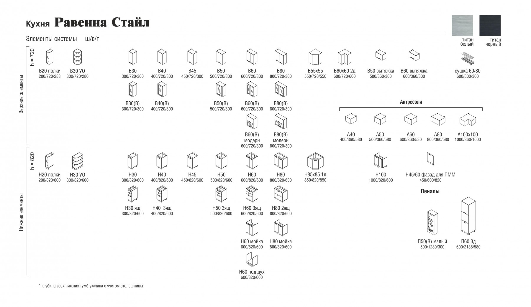 Цена указана за: В40, В80(В), Н40ящ, Н80м. Столешница, мойка, бытовая техника в стоимость набора кухни не входит