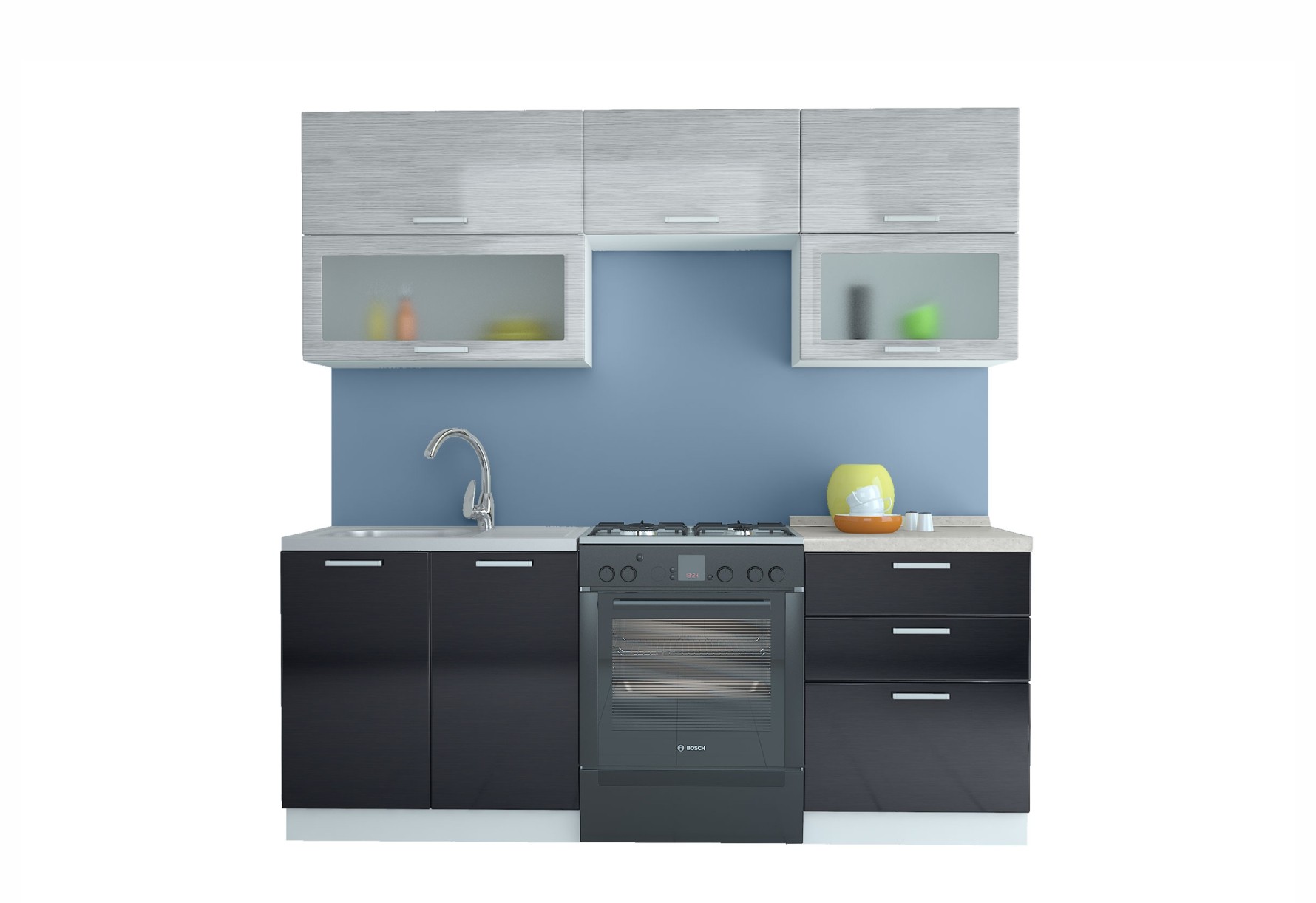 Равенна Стайл - это эконом предложение в линейке кухонь Равенна. Контрастные фасады в нижней части пространства создают понятную структуру, а в верхней сохраняют ощущение широты пространства. Глянцевые поверхности фасадов наполнят помещение светом даже в затененных комнатах. Сочетание черного, серого и белого цветов в интерьере еще называют монохромным сочетанием. Монохромные сочетания считаются признаком вкуса. Такое цветовое сочетание используют знатоки и ценители модных дизайнерских направлений. Серебристые ручки правильной геометрической формы, характерные для стиля модерн и минимализм, дополняют стилистический замысел дизайнера. Сатинированное стекло создает эффект размытости и затенения ярких цветов, стоящих за ним кухонных принадлежностей, как бы "скрывая в себе" предметы. Столешница в комплект не входит, можно заказать у нас в размер Вашей кухни.