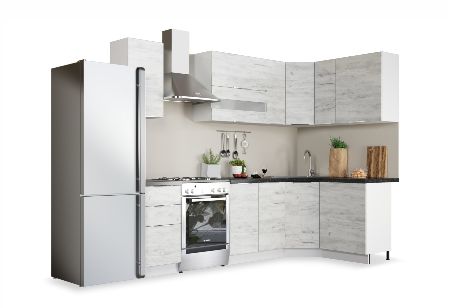 Равенна Тренд создана для ценителей природных мотивов и спокойных тонов в кухонном интерьере. Верхние и нижние фасады из ЛДСП с модным декором «Крафт серый», невероятно реалистично имитирующим рисунок и текстуру натурального дерева, создают атмосферу тепла, уюта и единения с первозданной природой. Торцевые металлические ручки подчеркивают минимализм модулей и обезопасят от травм, за кухней легко ухаживать. Столешница в комплект не входит, можно заказать у нас в размер Вашей кухни.