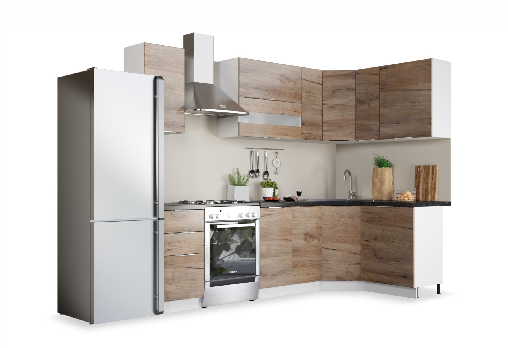Равенна Тренд создана для ценителей природных мотивов и спокойных тонов в кухонном интерьере. Верхние и нижние фасады из ЛДСП с модным декором «Крафт серый», невероятно реалистично имитирующим рисунок и текстуру натурального дерева, создают атмосферу тепла, уюта и единения с первозданной природой. Торцевые металлические ручки подчеркивают минимализм модулей и обезопасят от травм, за кухней легко ухаживать. Столешница в комплект не входит, можно заказать у нас в размер Вашей кухни.
