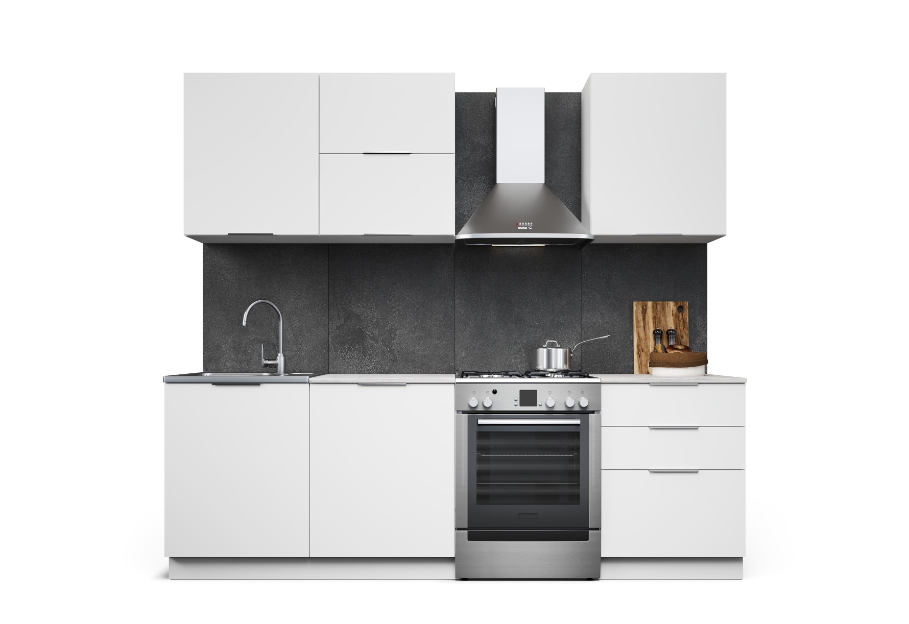 Функциональная кухня Равенна Тренд Софт выполнена в спокойных природных тонах и великолепно смотрится в современных интерьерах. Цвет декора «Монте» на фасадах из МДФ с красивым рисунком под мрамор – эффектный акцент, создает безупречное сочетание с декором цвета темной морской волны Маренго. Инновационное покрытие Soft-touch с матовым, тактильно приятным бархатистым эффектом придает кухне премиальный вид. Покрытие устойчиво к влаге и мелким царапинам, не оставляет следов от пальцев, долго сохраняет цвет и яркость. Торцевые металлические ручки подчеркивают минимализм модулей, обезопасят от травм. Столешница в комплект не входит, можно заказать у нас в размер Вашей кухни.