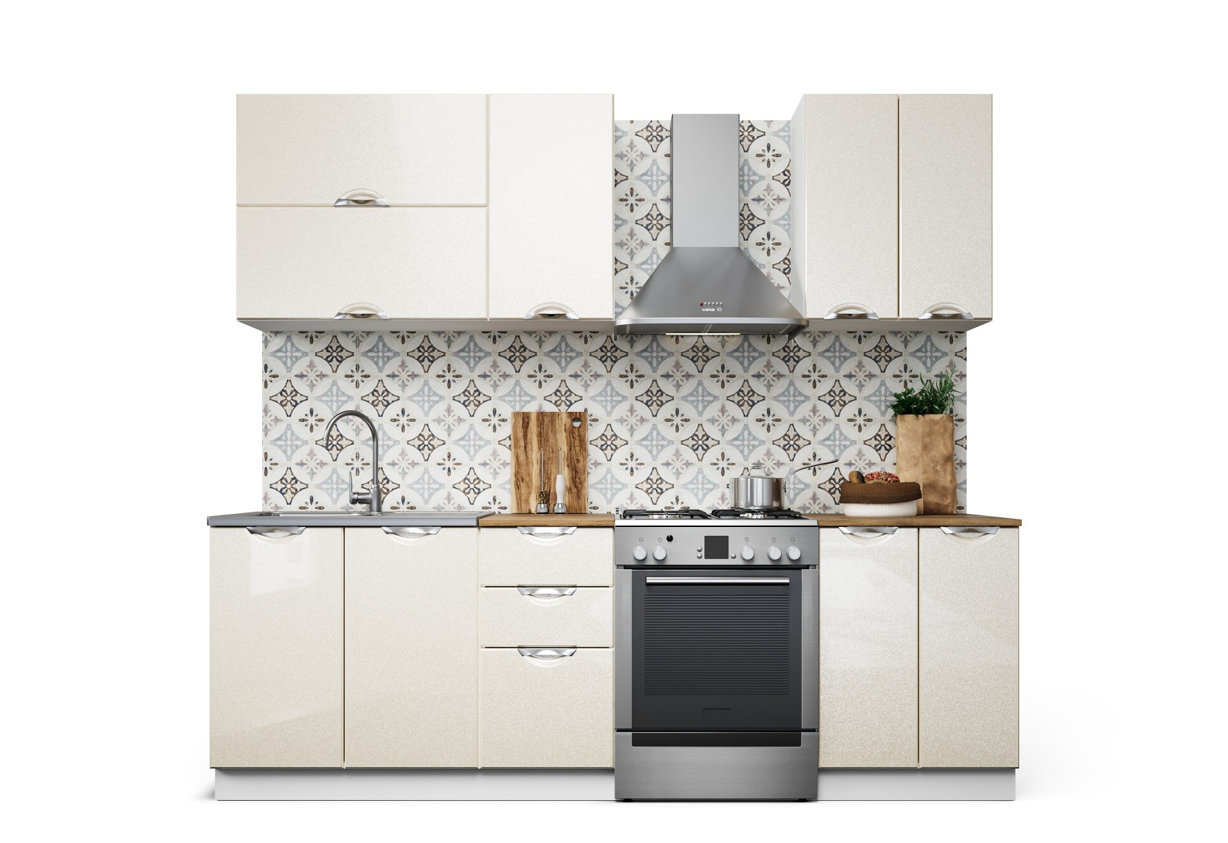 Равенна Вива - это стильная современная кухня с эффектом «металлик», переливы и блики которого создают глубину и многогранную игру цветов. За счет комбинации разных фасадов получается множество цветовых решений интерьера кухни – от насыщенного яркого, до спокойного нейтрального. Эстетически привлекательные и безопасные ручки находятся в одной плоскости с фасадом, идеально подходят для небольших помещений. Стиль кухни позволяет ее легко сочетать с различными элементами декора, текстилем и аксессуарами. Столешница в комплект не входит, можно заказать у нас в размер Вашей кухни.