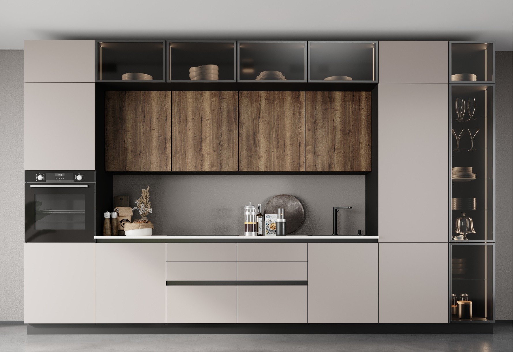 Кухня "Авеню" - это революция пространства и стиля. Утолщенные фасады 18мм с инновационными покрытиями "синхронные поры", гладкие матовые или глянцевые варианты, сделают кухонную зону центром притяжения. Черные, просторные корпуса шкафов и интегрированная подсветка создают непревзойденное сочетание стиля и функциональности. В комплектацию включена высококачественная фурнитура ПРЕМИУМ класса, гарантирующая безупречное функционирование каждой детали.