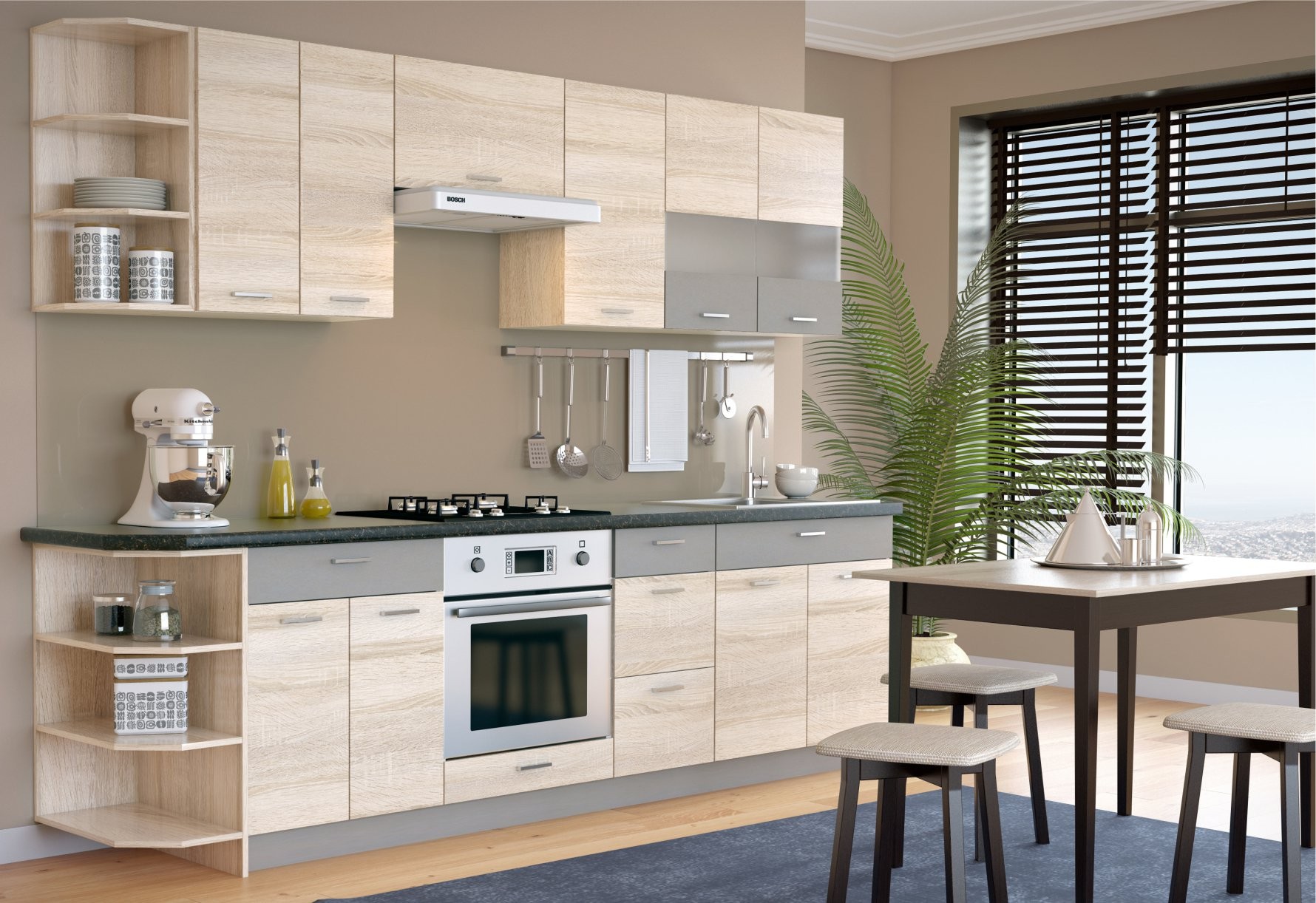 Кухня Николь специально разрабатывалась для создания интерьера студий (объединенное жилое и кухонное пространство) или для кухонь, совмещенных с гостиными. Поэтому и выбран один из самых распространенных сегодня цветов в мебели для жилых комнат - дуб сонома. Эта кухня гармонично впишется в пространство с другой жилой мебелью - шкафами, стеллажами, тумбами, столами и т.д. Широкий выбор сегментов модели Николь позволяет и вписать ее в небольшое помещение, и создать проект большой функциональной кухни. Дополнительную функциональность кухне придает то, что почти во всех нижних модулях есть выдвижные ящики. Наличие дополнительных опций дает возможность создать даже с небольшим бюджетом дизайнерский интерьер. Несмотря на невысокую стоимость, в этой кухне сохранены все экологические стандарты и использована качественная фурнитура. Столешница в комплект не входит, можно заказать у нас в размер Вашей кухни.