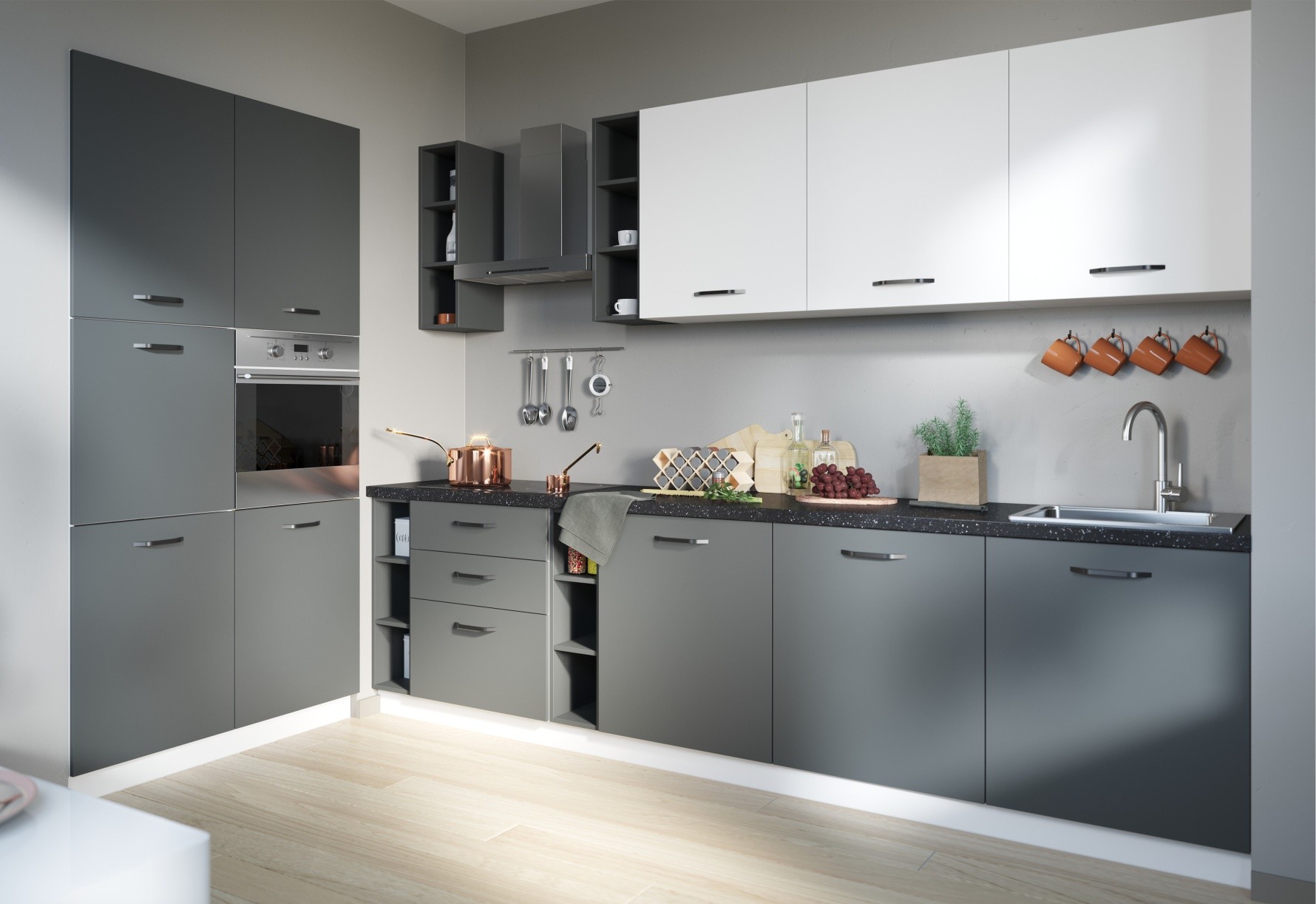Модульная кухня Равенна Смарт – оригинальное решение для творческих людей. Лаконичные фасады выполнены из МДФ в модных сочетаниях фактур, имитирующих цвет и рисунок дерева, мрамора и бетона. Металлические ручки на модулях скошены по краям, что делает использование кухни более безопасным. Широкий ряд модулей дополнен антресолями – это увеличивает площадь системы хранения и подойдет даже для самых маленьких кухонь. Актуальный дизайн в натуральных тонах поможет создать кухню вашей мечты.