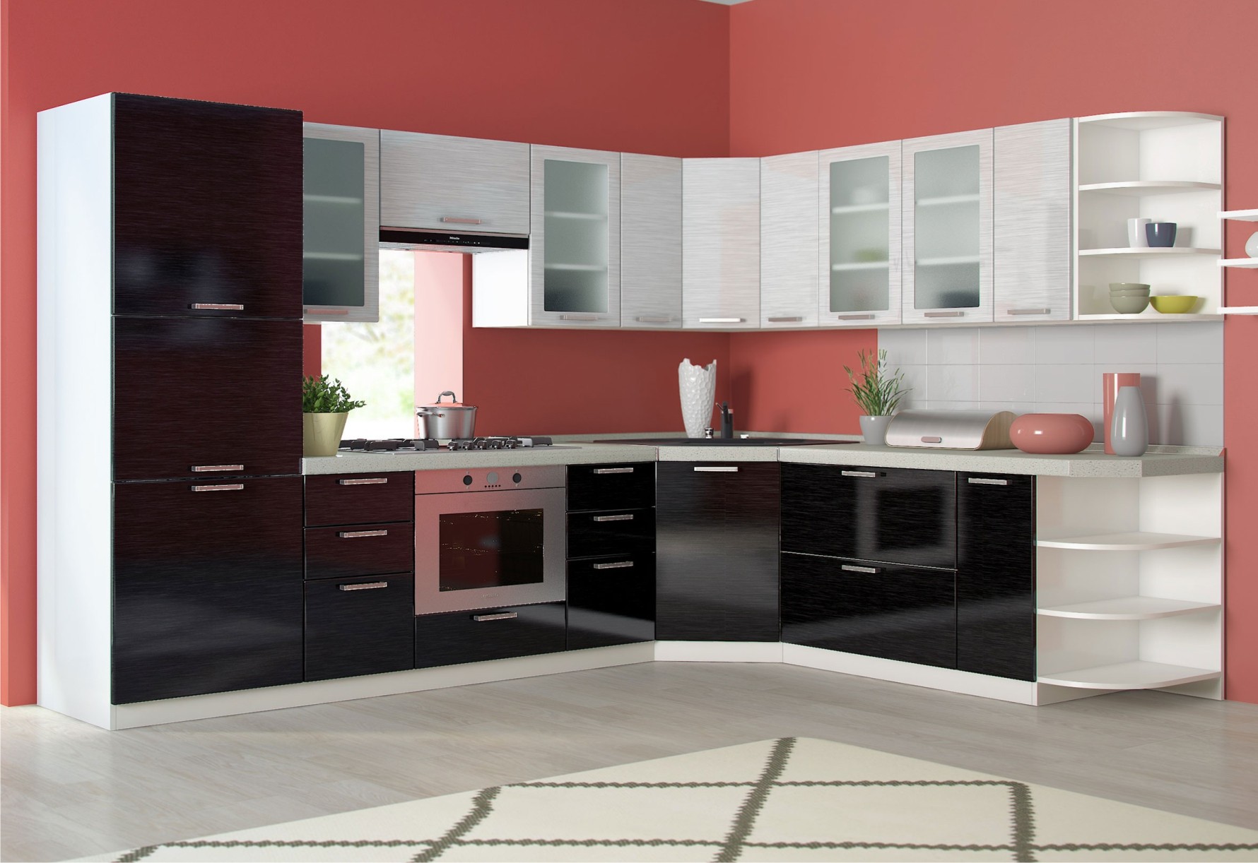 Угловая кухня является выигрышным вариантом – увеличивает площадь рабочей поверхности, задействовав угол комнаты. В кухне Равенна Стайл два вида угловых шкафов: