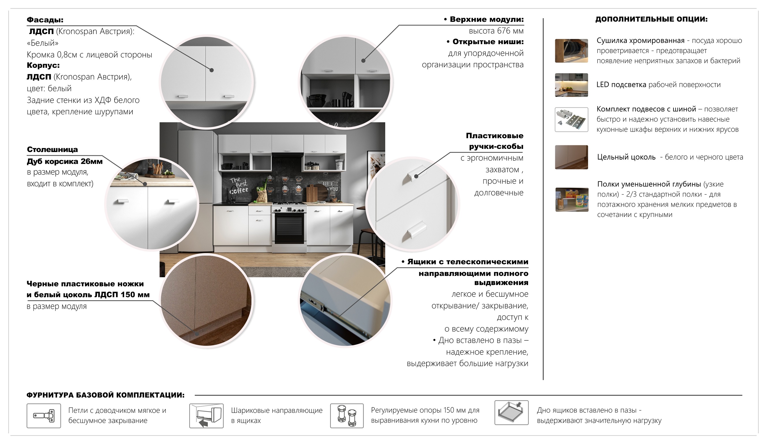 Кухня Равенна Фаби белая 1,8м (60/60)