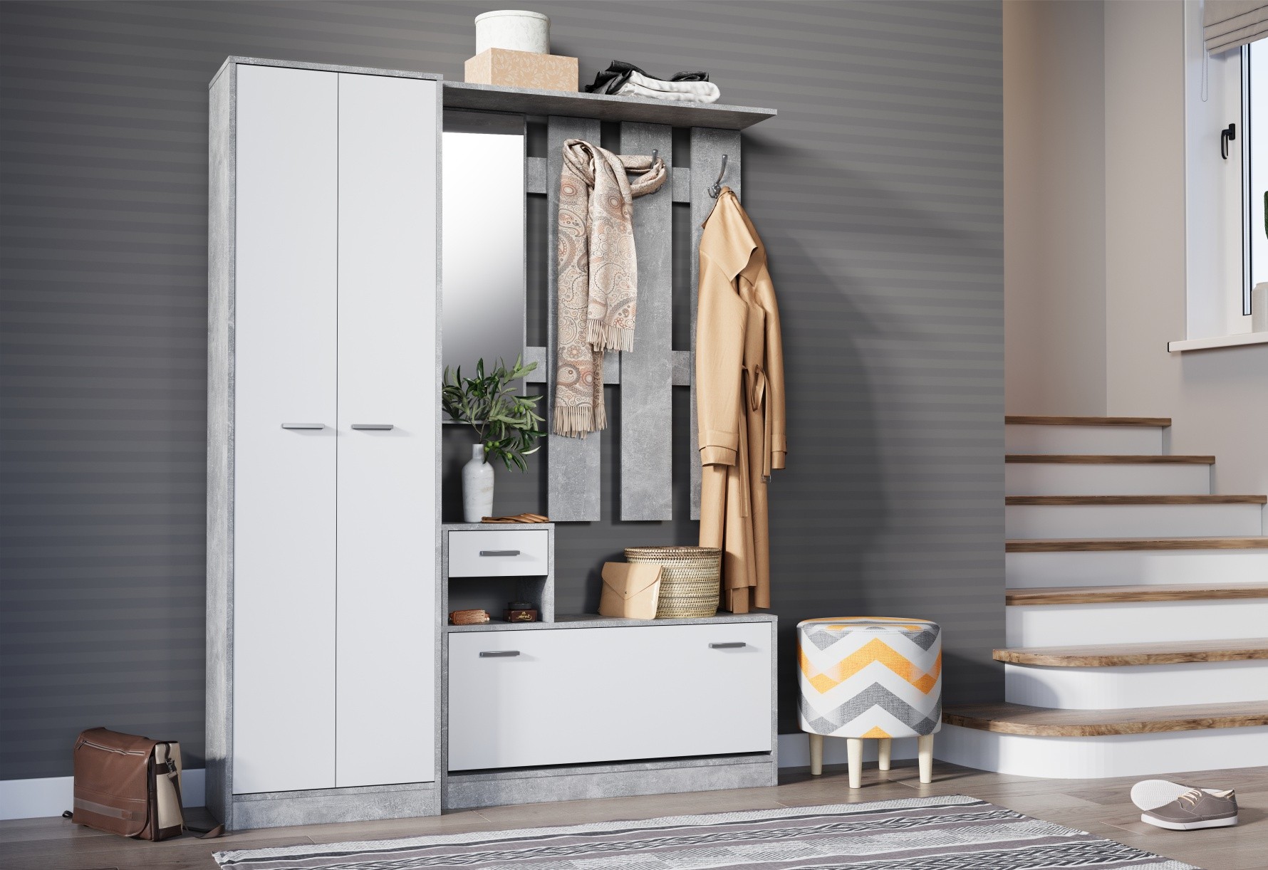 Интер – это современная прихожая в стиле минимализма, минимум декора, максимум функционала. Компактная и вместительная, с небольшой глубиной поможет правильно организовать пространство в помещении даже с небольшой площадью. Прихожая включает в себя необходимые модули: вешалка с крючками, вместительные обувницы, выдвижные ящики для мелочей, зеркало, шкаф с распашными дверями, выдвижной вешалкой и полками. Модное сочетание нейтральных природных цветов наполнит комнату светом, визуально увеличит пространство. Прихожая подойдет тем, кто любит практичность и разумность.