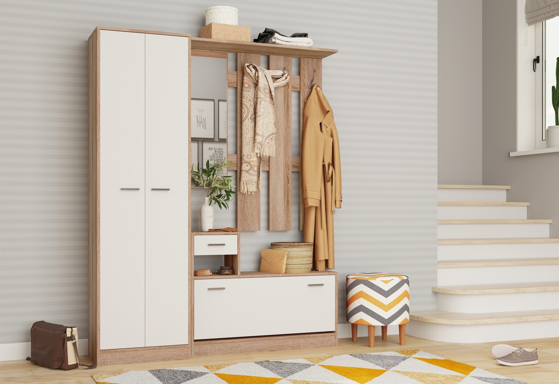 Интер – это современная прихожая в стиле минимализма, минимум декора, максимум функционала. Компактная и вместительная, с небольшой глубиной поможет правильно организовать пространство в помещении даже с небольшой площадью. Прихожая включает в себя необходимые модули: вешалка с крючками, вместительные обувницы, выдвижные ящики для мелочей, зеркало, шкаф с распашными дверями, выдвижной вешалкой и полками. Модное сочетание нейтральных природных цветов наполнит комнату светом, визуально увеличит пространство. Прихожая подойдет тем, кто любит практичность и разумность.