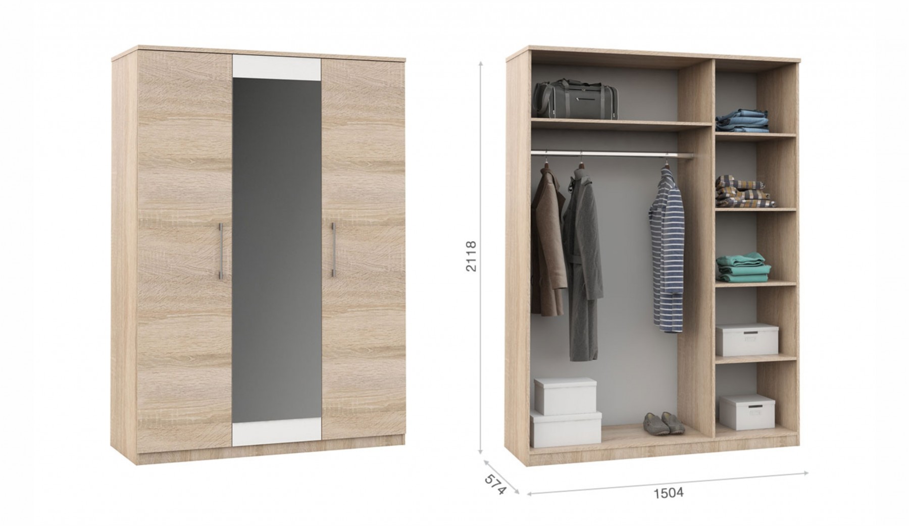 Классический распашной трехдверный шкаф выполнен в стиле минимализм: строгие линии, идеальные пропорции, отсутствие декора. Нейтральные цвета подойдут для любого стиля интерьера, их можно сочетать со множеством ярких и насыщенных оттенков тем самым полностью преображая пространство. Зеркало на фасаде визуально добавляет света и простора. Идеально компонуется со всеми модулями системы Аврора.