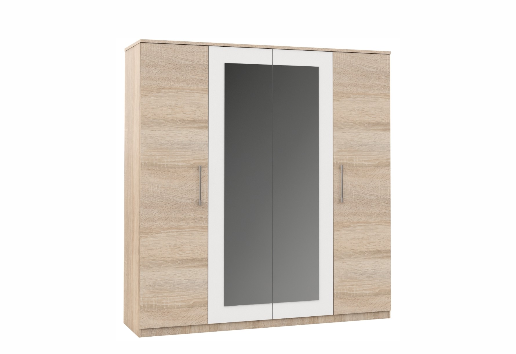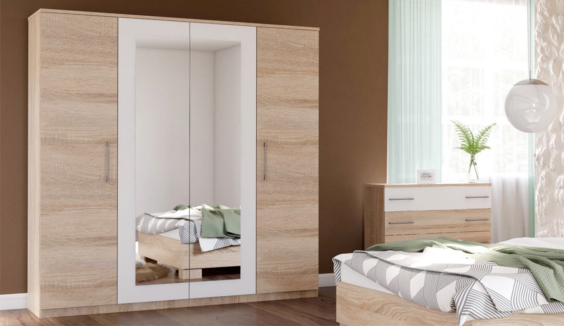 Классический распашной четырехдверный шкаф выполнен в стиле минимализм: строгие линии, идеальные пропорции. Нейтральные цвета шкафа подойдут для любого стиля интерьера, их можно сочетать со множеством ярких и насыщенных оттенков тем самым полностью преображая пространство. Зеркала на центральных фасадах сделают спальню светлее и просторнее. Идеально компонуется со всеми модулями системы Аврора. Мебель выполнена из высококачественных материалов.