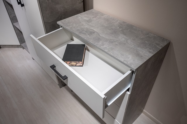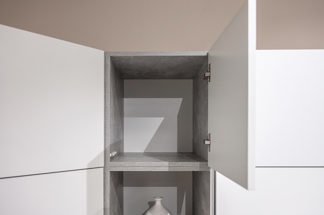 • Система "push-to-open" обеспечивает аккуратный вид модулю и удобство в использовании, снижает риск травм и делает доступ к содержимому шкафа проще с помощью легкого нажатия на фасад