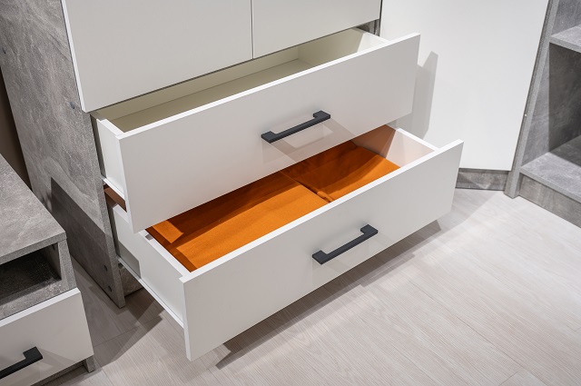 • Дно ящиков и задняя стенка изготовлены из ламинированного ХДФ, который выделяется высокой прочностью и экологической безопасностью, что гарантирует долговечность и надежность мебели