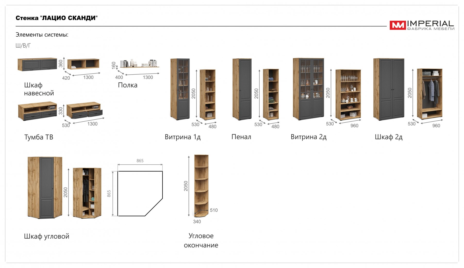 • шкаф 2дв. и угловой, угловое окончание, шкаф навесной и полка, тумба для ТВ