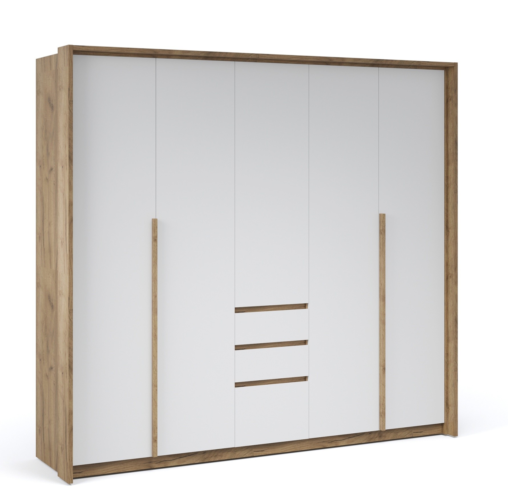 Функциональный распашной шкаф с массивными ручками контрастного цвета включает в себя вместительные полки и отделения со штангой, что позволяет создать систему для хранения вещей различного назначения. Встраиваемая в портал LED подсветка – оригинальное дизайнерское решение и дополнительный источник освещения. Современные цвета декора корпуса и белоснежный фасад добавят в жилое помещение света, уюта и комфорта. Идеально компонуется со всеми модулями системы Мишель.