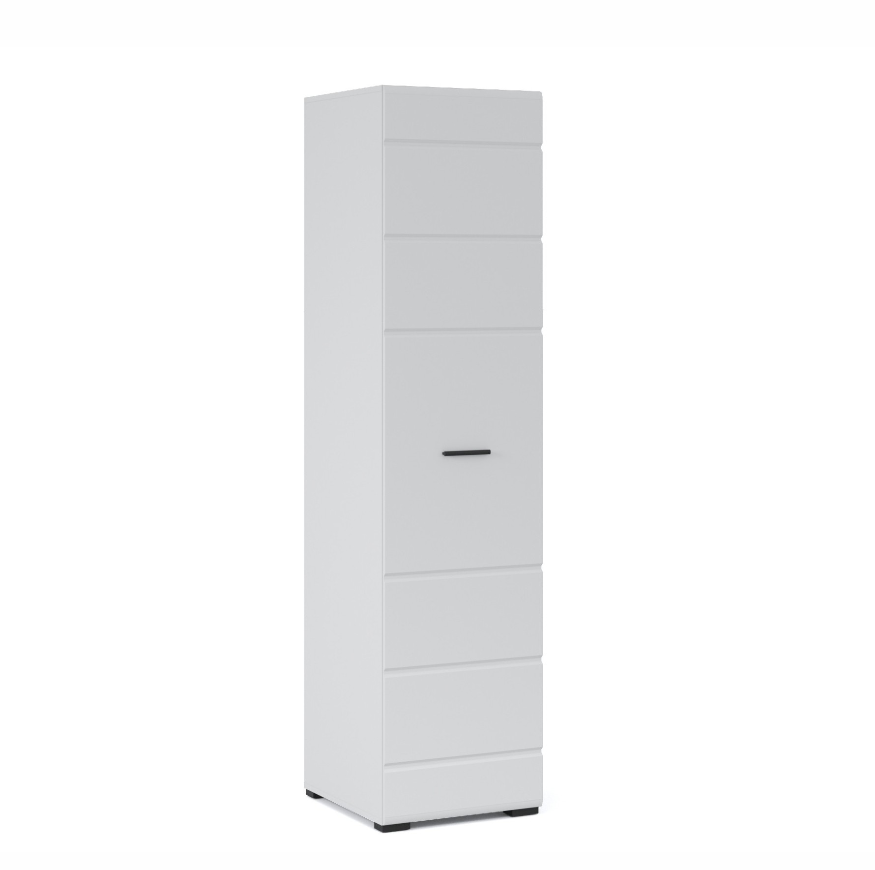 Распашной шкаф Йорк со штангой и полками поможет грамотно организовать пространство в Вашем доме. За счет белых глянцевых фасадов МДФ с горизонтальными линиями он визуально расширит пространство и наполнит его светом. Смотрится красиво со всех сторон, благодаря использованию скрытой фурнитуры для сборки. Шкаф можно дополнить другими модулями системы Йорк. Мебель выполнена из экологически безопасных материалов.