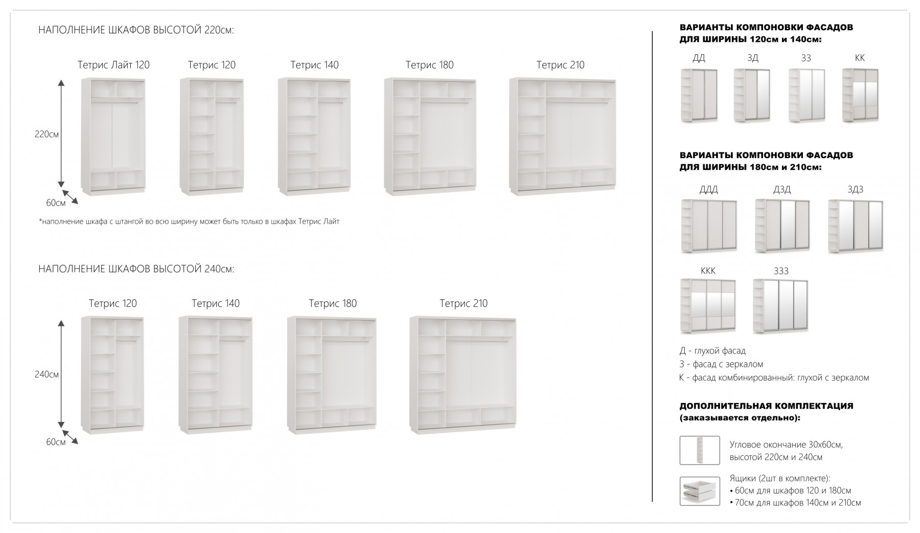 Шкаф-купе "Тетрис"- самое компактное и универсальное решение для хранения вещей! Он легко впишется в обстановку любой комнаты, а его вместимость Вас приятно удивит. Двери-купе представлены в различных вариантах, и по Вашему желанию шкаф может комплектоваться необходимым количеством ящиков и угловым окончанием с полками - подберите то, что подходит именно Вам.