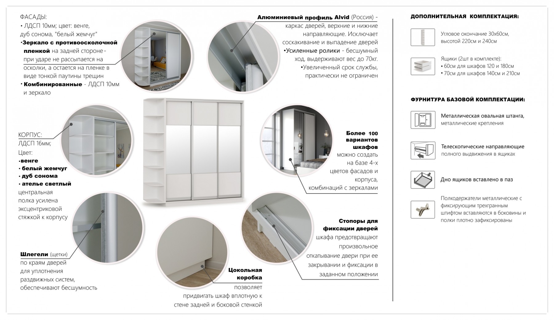 Шкаф-купе "Тетрис"- самое компактное и универсальное решение для хранения вещей! Он легко впишется в обстановку любой комнаты, а его вместимость Вас приятно удивит. Двери-купе представлены в различных вариантах, и по Вашему желанию шкаф может комплектоваться необходимым количеством ящиков и угловым окончанием с полками - подберите то, что подходит именно Вам.