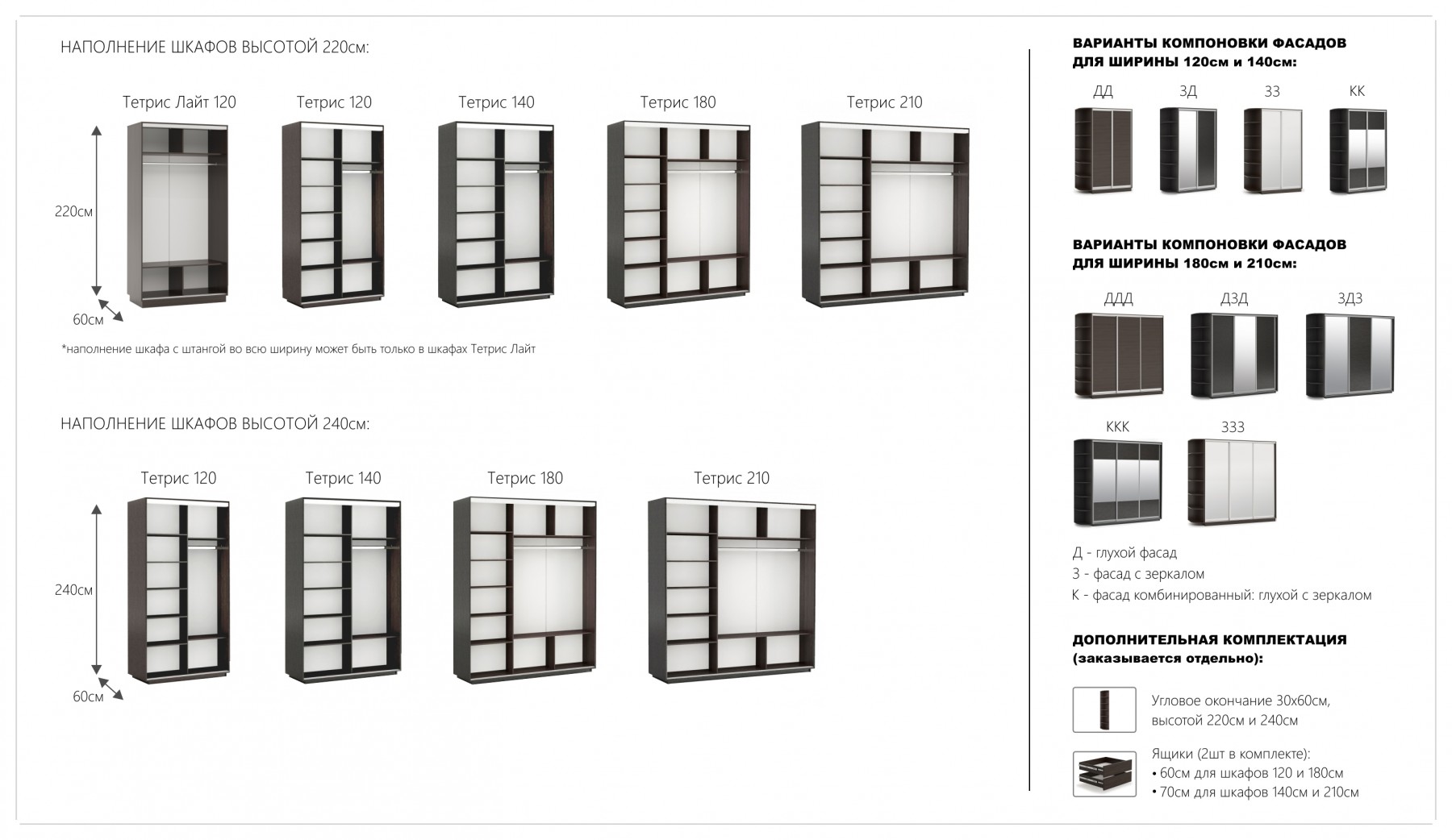 Тетрис 1800 Венге с зеркалами
