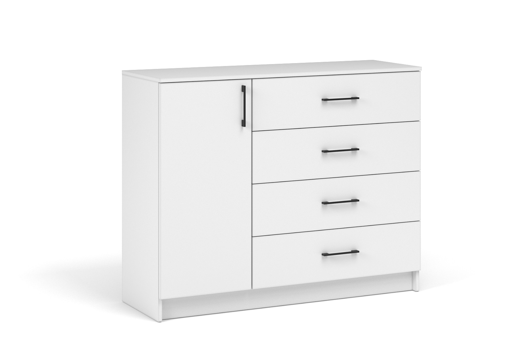 Практичный и надежный комод, изготовленный из прочного ЛДСП высокого качества, оборудован вместительными полками и выдвижными ящиками на роликовых направляющих для удобного хранения вещей по категориям. Нейтральные цвета декора визуально добавляют света и создают уют, а черные матовые ручки завершают композицию. Комод легко вписывается в готовые интерьеры благодаря своему универсальному дизайну и гармонично сочетается со всеми элементами модульной системы Чикаго.