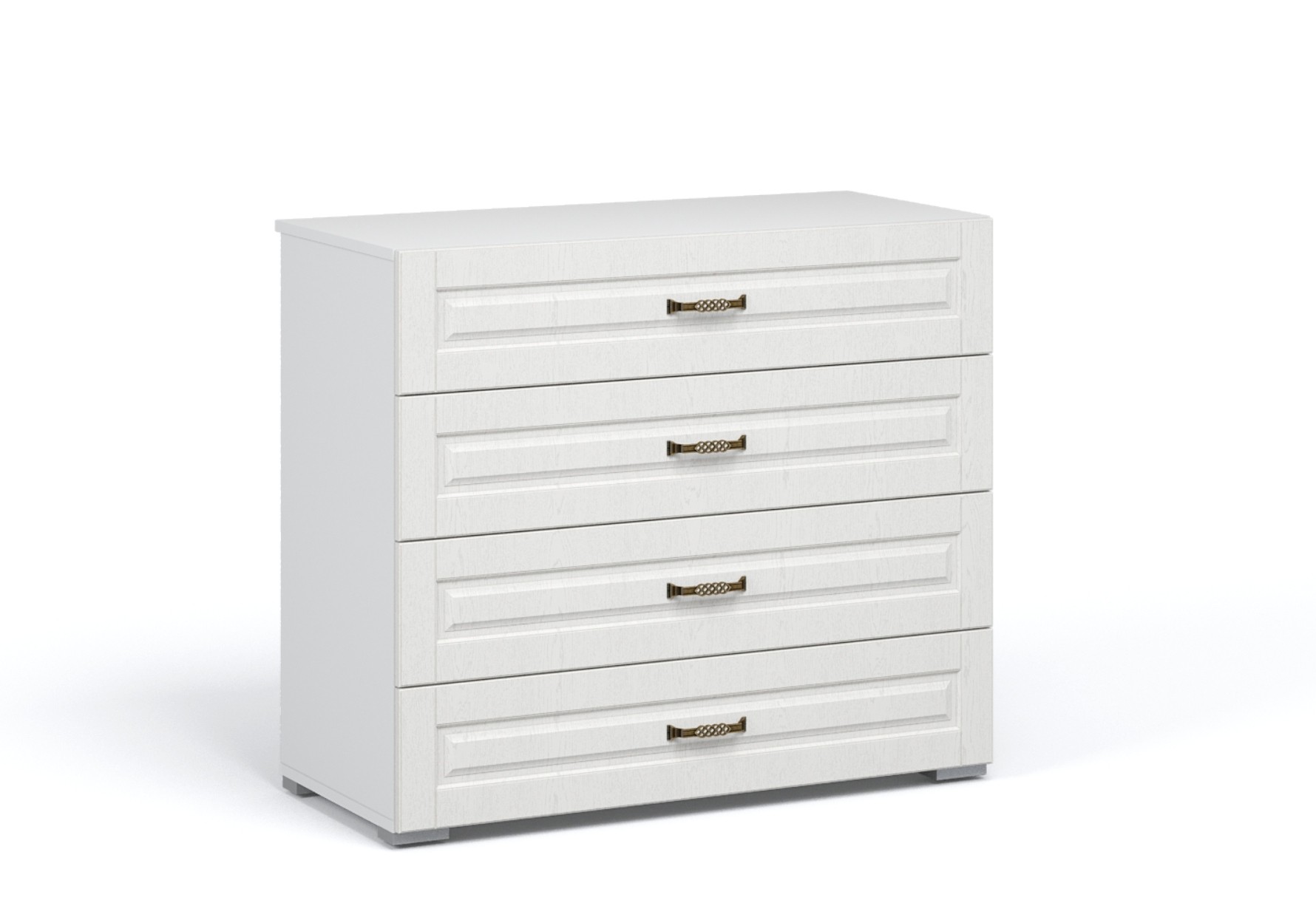 Вместительный комод Лацио создаст уютную атмосферу в интерьере гостиной или спальни. Белые фрезерованные фасады из МДФ с рисунком и текстурой дерева наполняют комнату светом, делают ее просторнее. Оригинальные металлические ручки придают комоду изысканность. В выдвижных ящиках на телескопических направляющих удобно хранить любые предметы одежды и личные вещи. Выполнен из экологичных материалов