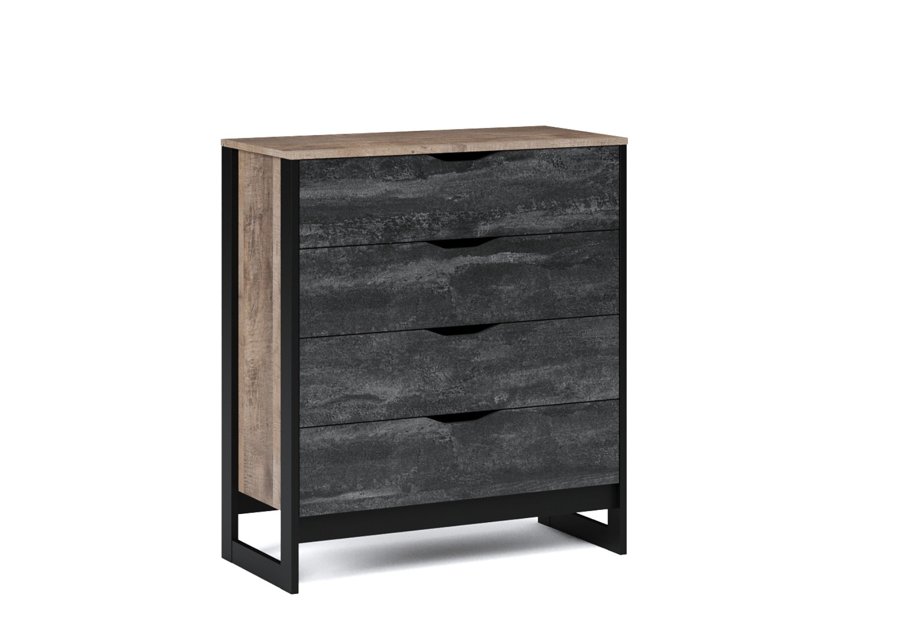 Функциональный вместительный комод станет отличным решением для оформления прихожей, спальни или гостиной. Особенность дизайна - это сочетание реалистичных по цвету и тактильности трендовых декоров, которые соответствуют последним городским тенденциям. "Дуб Гранж" привлекает имитацией вручную обработанного дерева и выразительной зернистой текстурой, характерной формой досок. Стильный серый цвет "Железного камня" с металлическими разводами и новая текстура состаренной штукатурки в сочетании с гладкостью металла вносят индустриальный колорит. Оригинальные ножки-опоры из МДФ контрастного цвета придают изюминку интерьеру. Комод оснащен четырьмя ящиками на телескопических направляющих для хранения вещей и аксессуаров. Отсутствие лицевой фурнитуры подчеркивает минимализм и геометрию модуля. Идеально компонуется со всеми модулями системы Стокгольм.