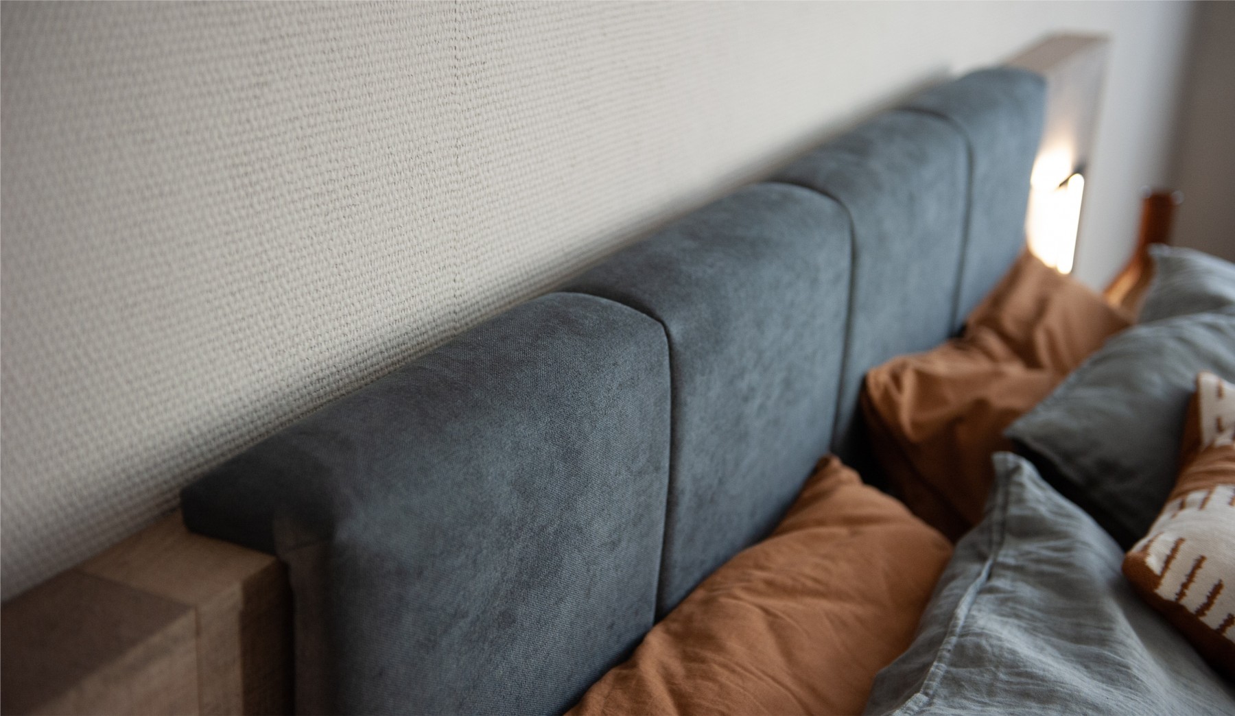 Кровать Стокгольм – современное решение для спальни в стилях лофт, сканди или эко-минимализм. Трендовый декор «Дуб Гранж» песочного оттенка с реалистичной имитацией вручную обработанного дерева, выразительными зернистыми текстурами и характерной формой досок, соответствует последним городским тенденциям. Скрытые опоры основания придают эффект парения, создают завораживающий футуристический интерьер. Накладные светильники и подсветка по периметру дают дополнительное освещение в ночное время, а мягкая накладка с вертикальной прострочкой комфортно поддерживает спину во время отдыха.