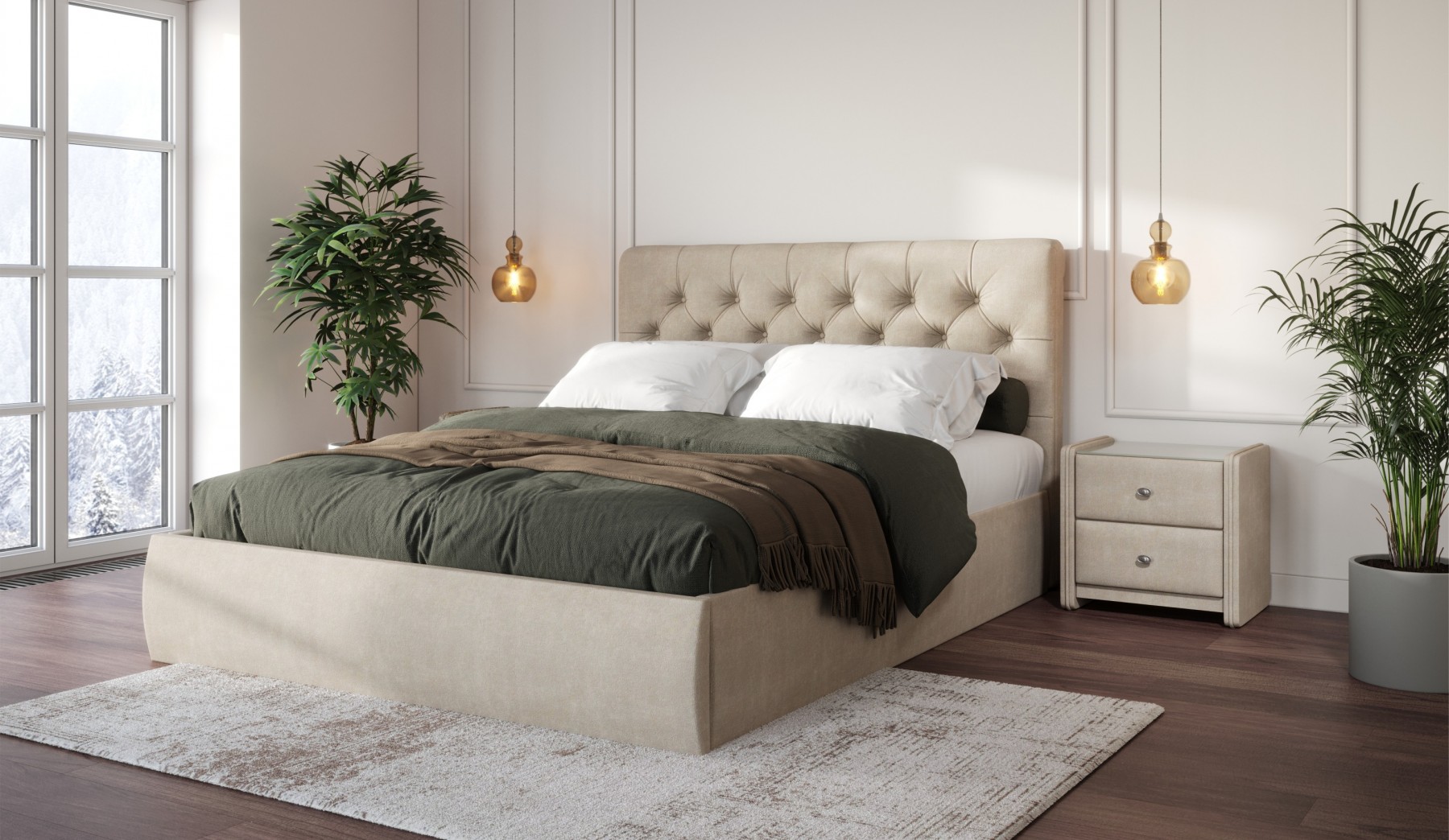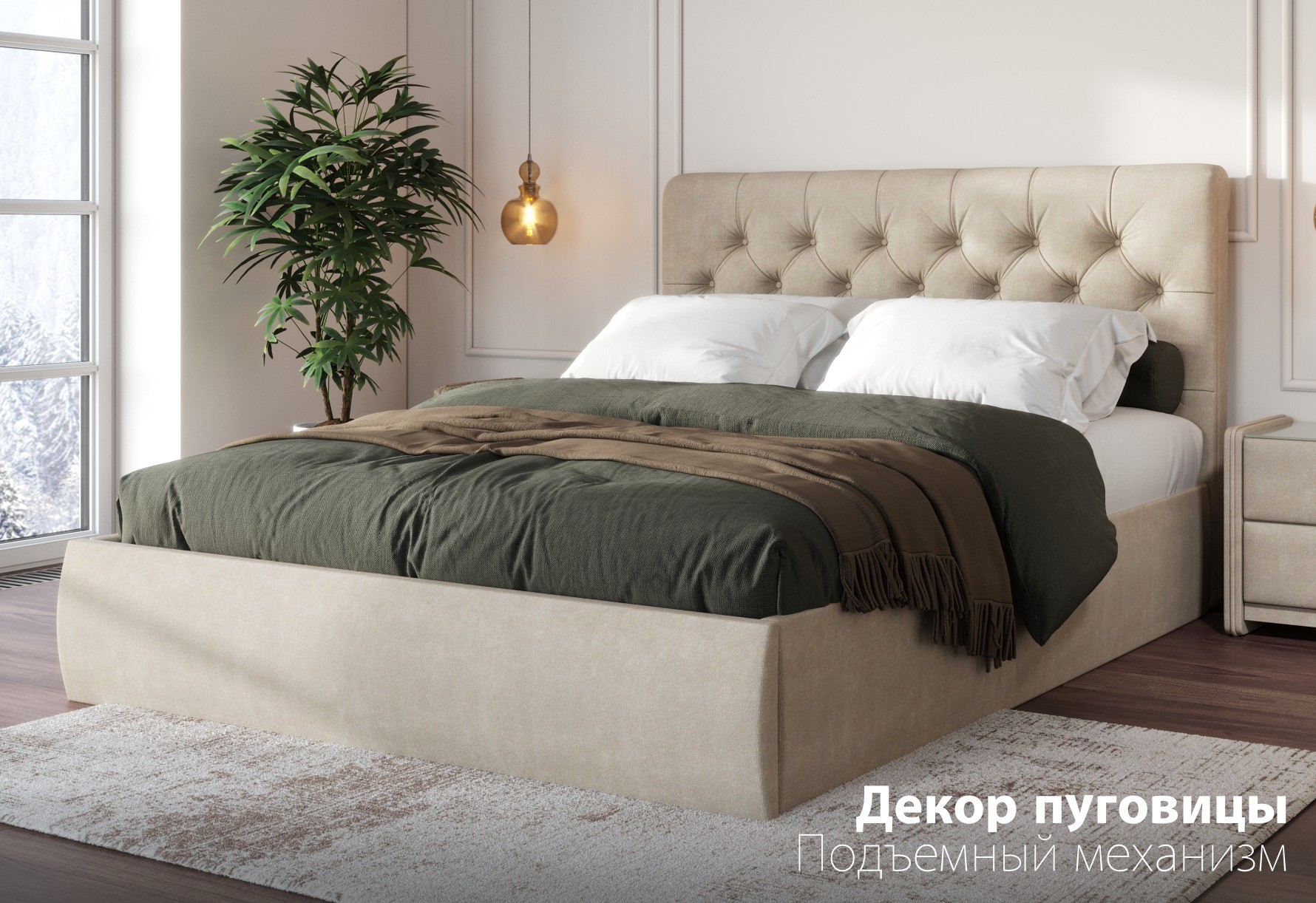 Беатриче с пуговицами 160*200 (подъемник) Ultra sand
