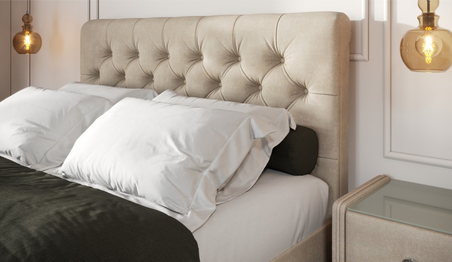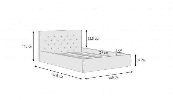 Беатриче" - кровать с каретной стяжкой, которая добавляет помещению ощущение роскоши и элегантности. Акцентное изголовье привлекает внимание своей каплевидной формой верхней части, а декорирование глубоких утяжек в форме ромба стразами или пуговицами придает особый шик. Кровать оснащена надежным подъемным механизмом, который предоставляет легкий доступ к вместительному бельевому ящику, скрытому под спальным местом. Ламинированный ящик без ограничения по весу удобен для хранения постельного белья. Ортопедическое основание на березовых ламелях обеспечивает правильную поддержку тела, способствуя здоровому и крепкому сну. Благодаря усиленному каркасу, конструкция выдерживает значительные нагрузки, что обеспечивает ее прочность и долговечность.