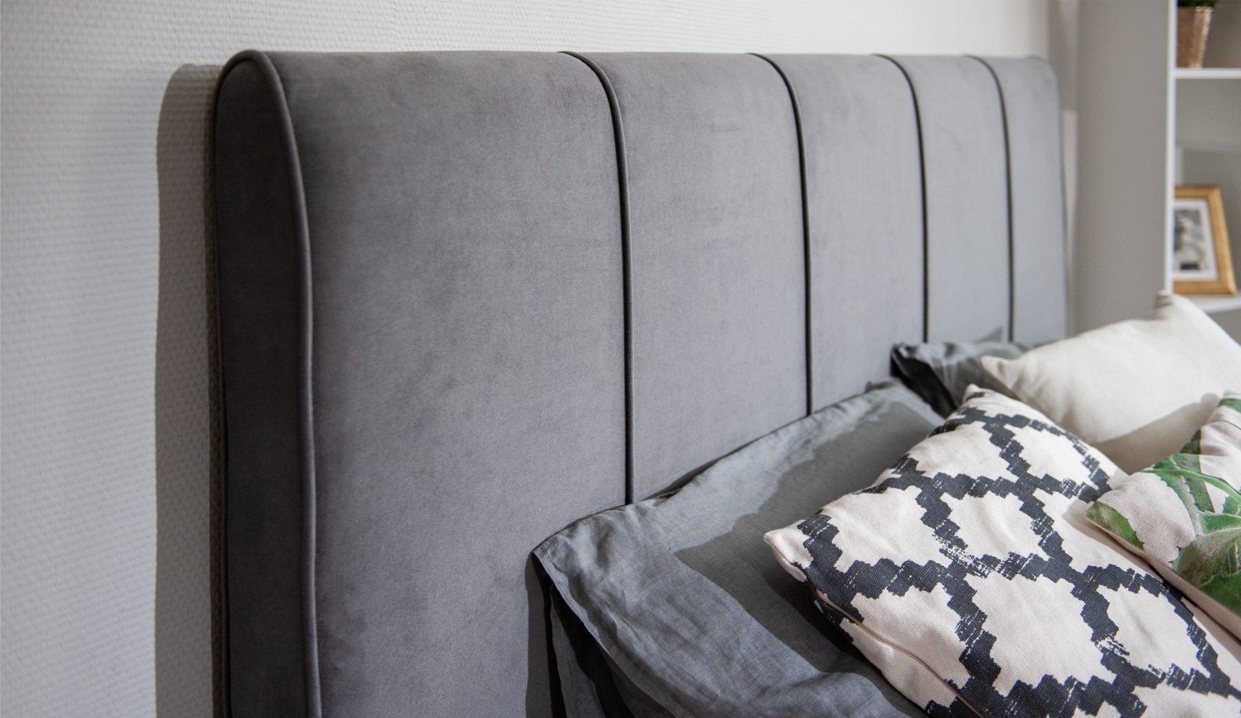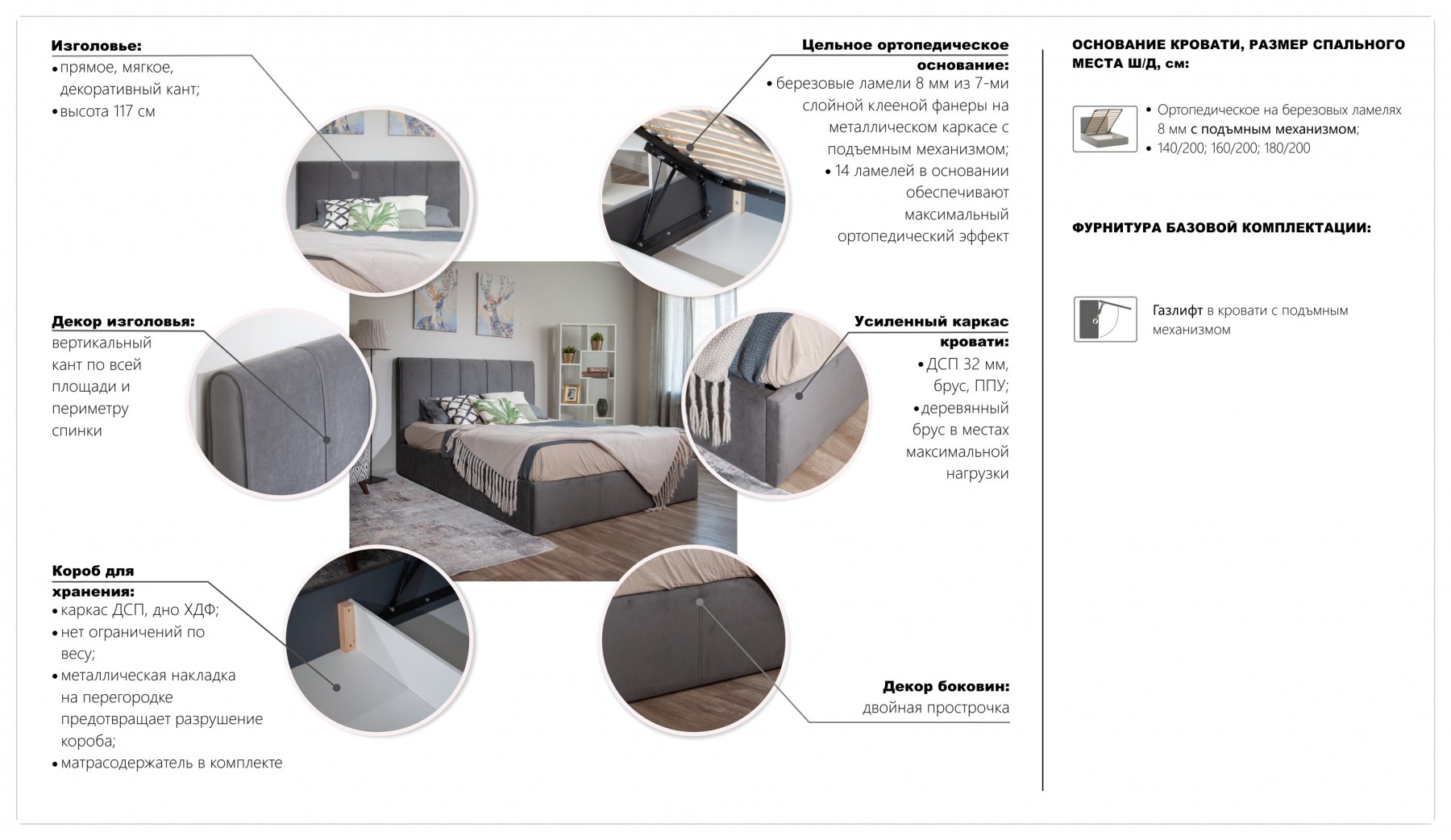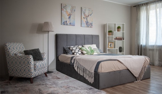 Кровать Джессика представляет собой сочетание функциональности и современного дизайна. Минималистичный стиль модели дополнен вертикальной строчкой с кантом на изголовье, что придает изделию объем и утонченный вид. Овальная верхняя часть изголовья добавляет конструкции элегантности. Усиленный каркас в сочетании с ортопедическим основанием на ламелях обеспечивает надежную поддержку и повышает уровень комфорта во время сна. Просторный короб для хранения позволяет разместить постельные принадлежности и сезонные вещи.