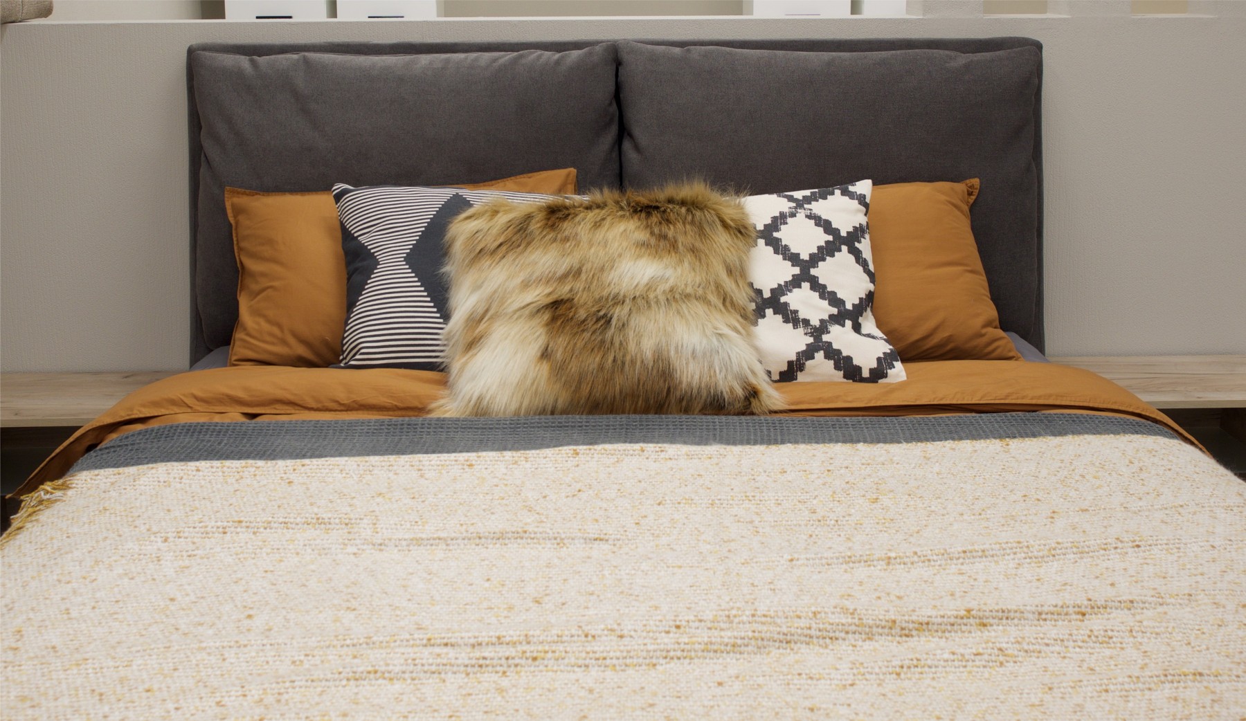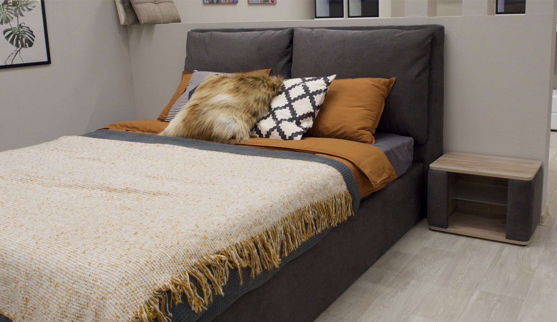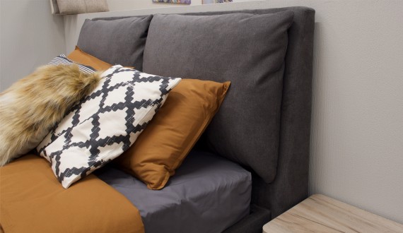 Эмилия – кровать, которая сочетает в себе элегантность современного европейского дизайна и повышенный комфорт. Обивочный материал – мягкий велюр с меланжевыми переливами – добавляет мебели изысканности и уюта. Изголовье с оптимальным углом наклона и удобные съёмные подушки делают процесс отдыха приятным, а обстановку комнаты более уютной и теплой. Основание кровати обладает ортопедическими свойствами, равномерно распределяя вес тела и поддерживая правильное положение позвоночника. А встроенный бельевой ящик представляет дополнительное место хранения вещей.