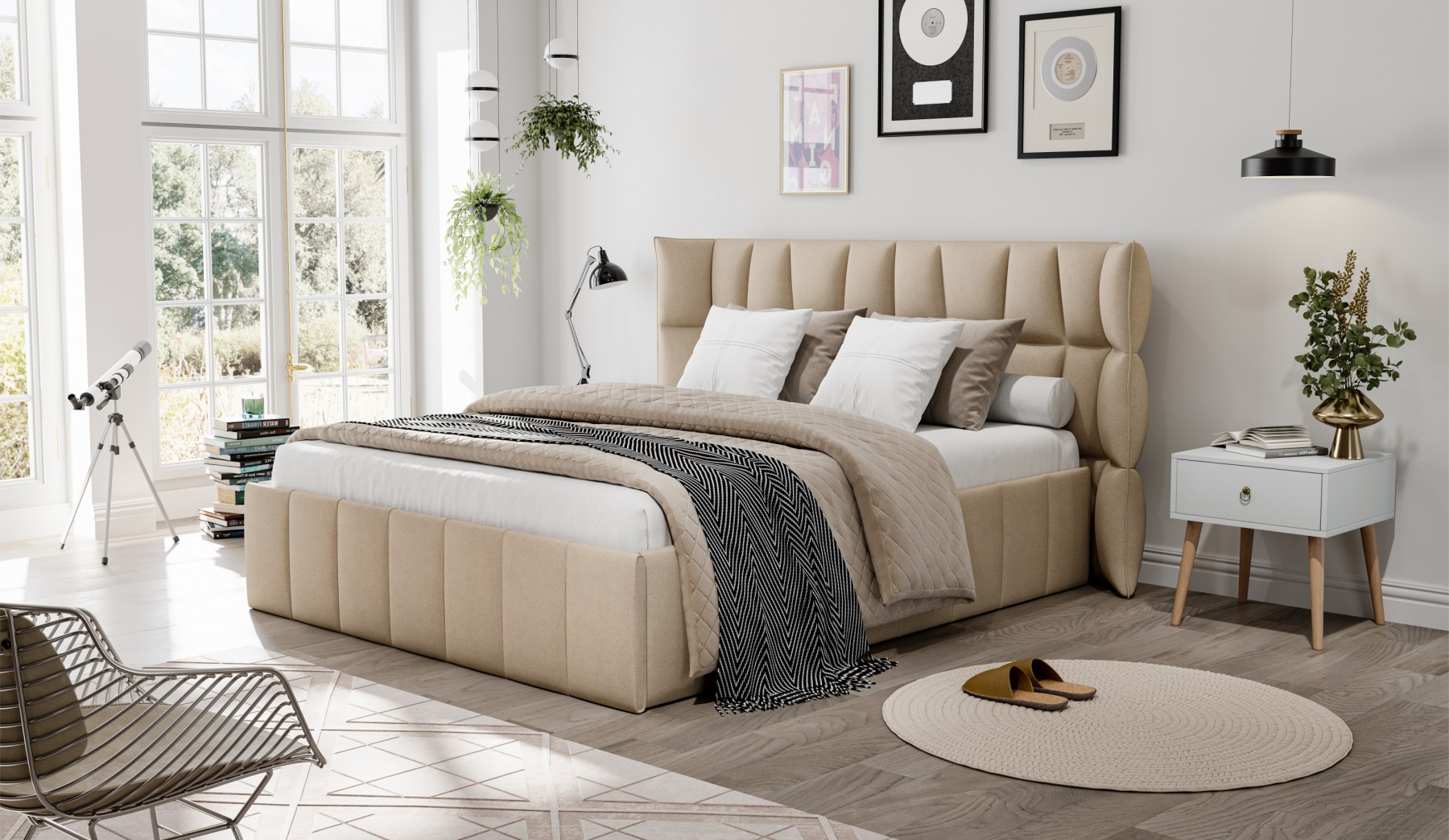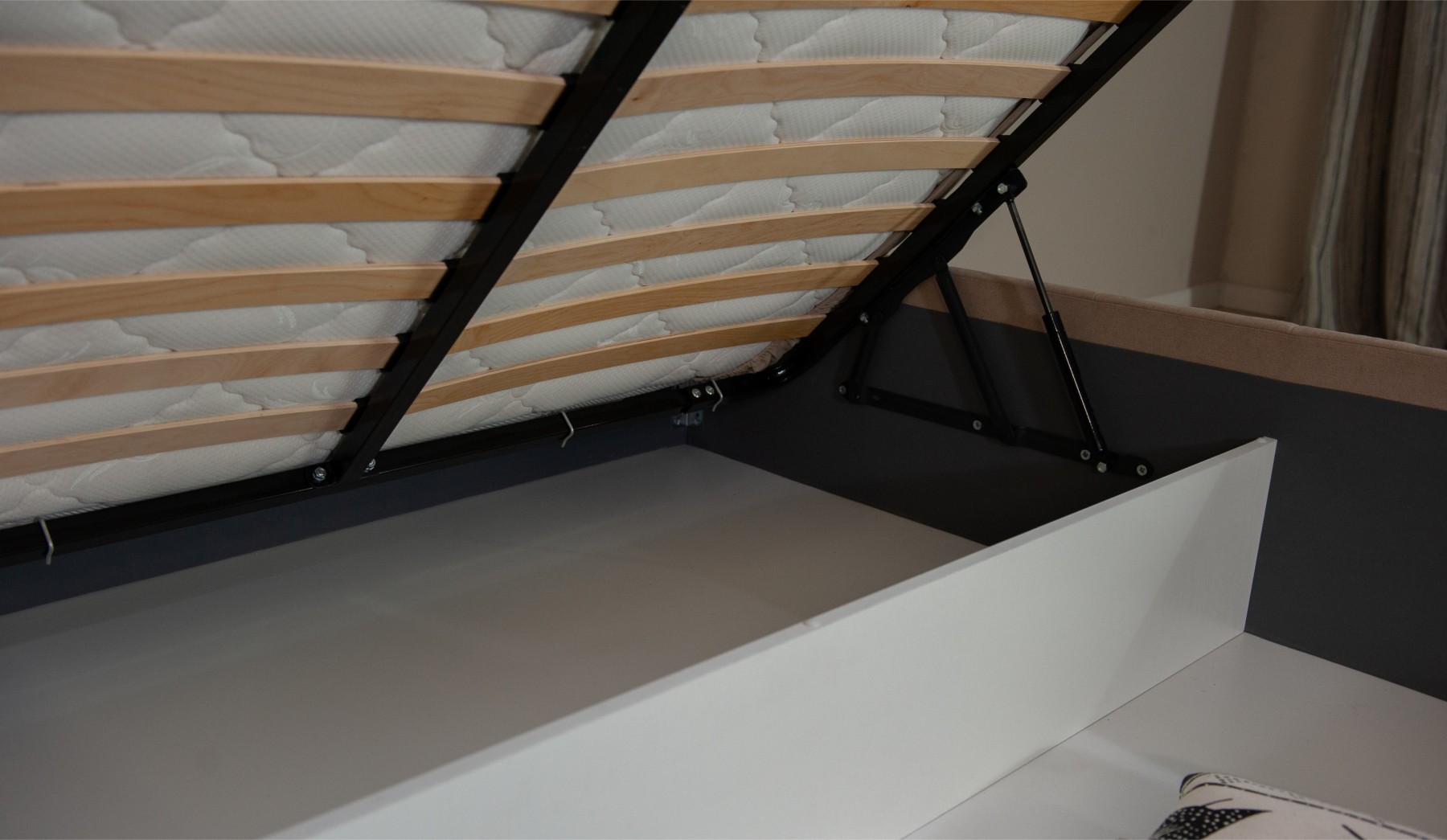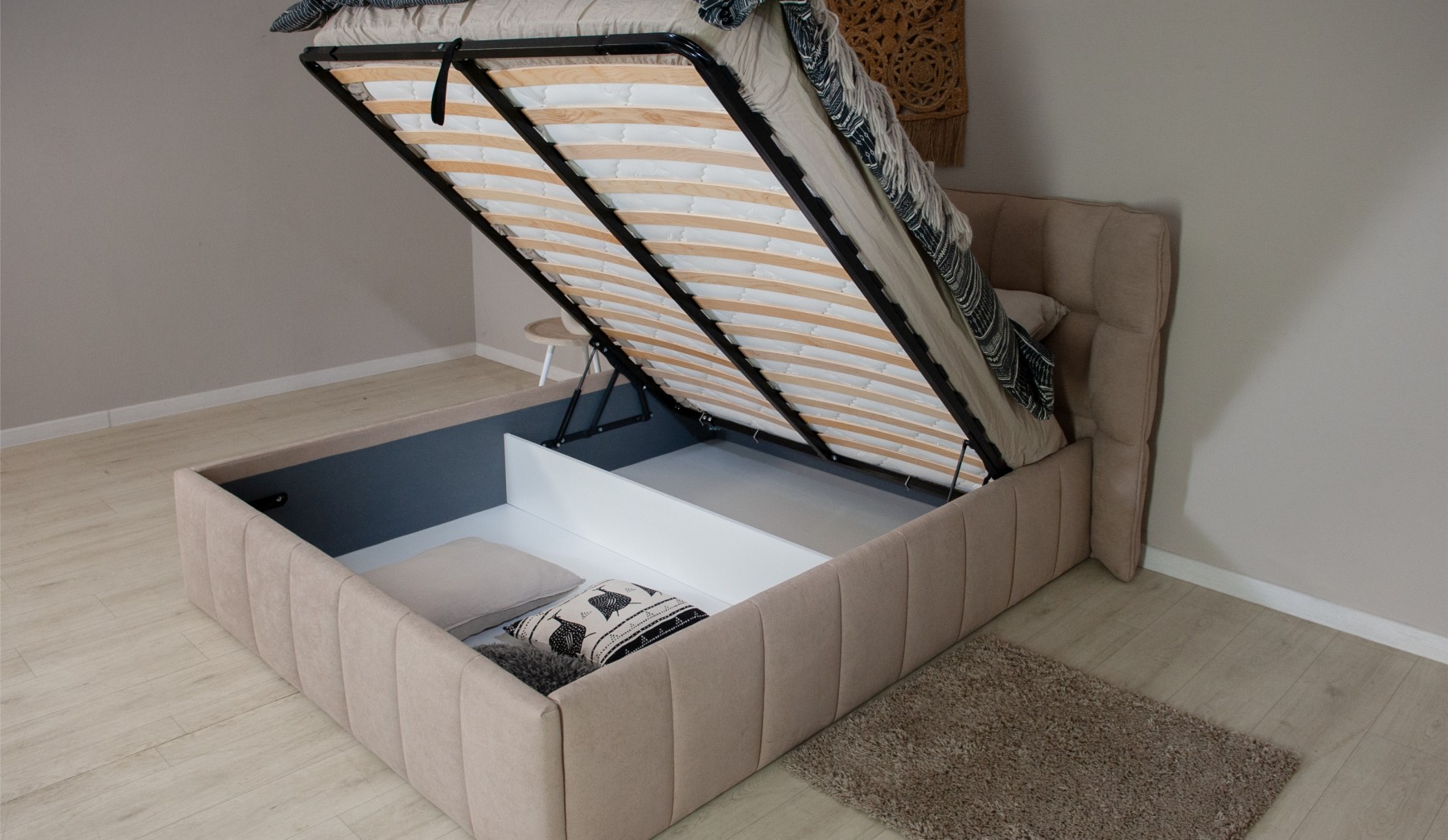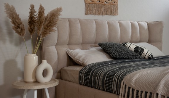 Роскошная кровать Габриэль с изысканным дизайнерским изголовьем превратит вашу спальню в настоящее произведение искусства. Изогнутое мягкое изголовье единой конструкции и ассиметричной строчкой добавляет модели элегантность и изысканность, в то время как углубленная стяжка с упругим наполнителем из холлофайбера придают дополнительный объем и усиливают ощущение уюта и комфорта. Надежный подъемный механизм на газлифтах обеспечивает легкий доступ к просторному бельевому ящику. Ортопедическое основание гарантирует комфортный отдых и здоровый сон.