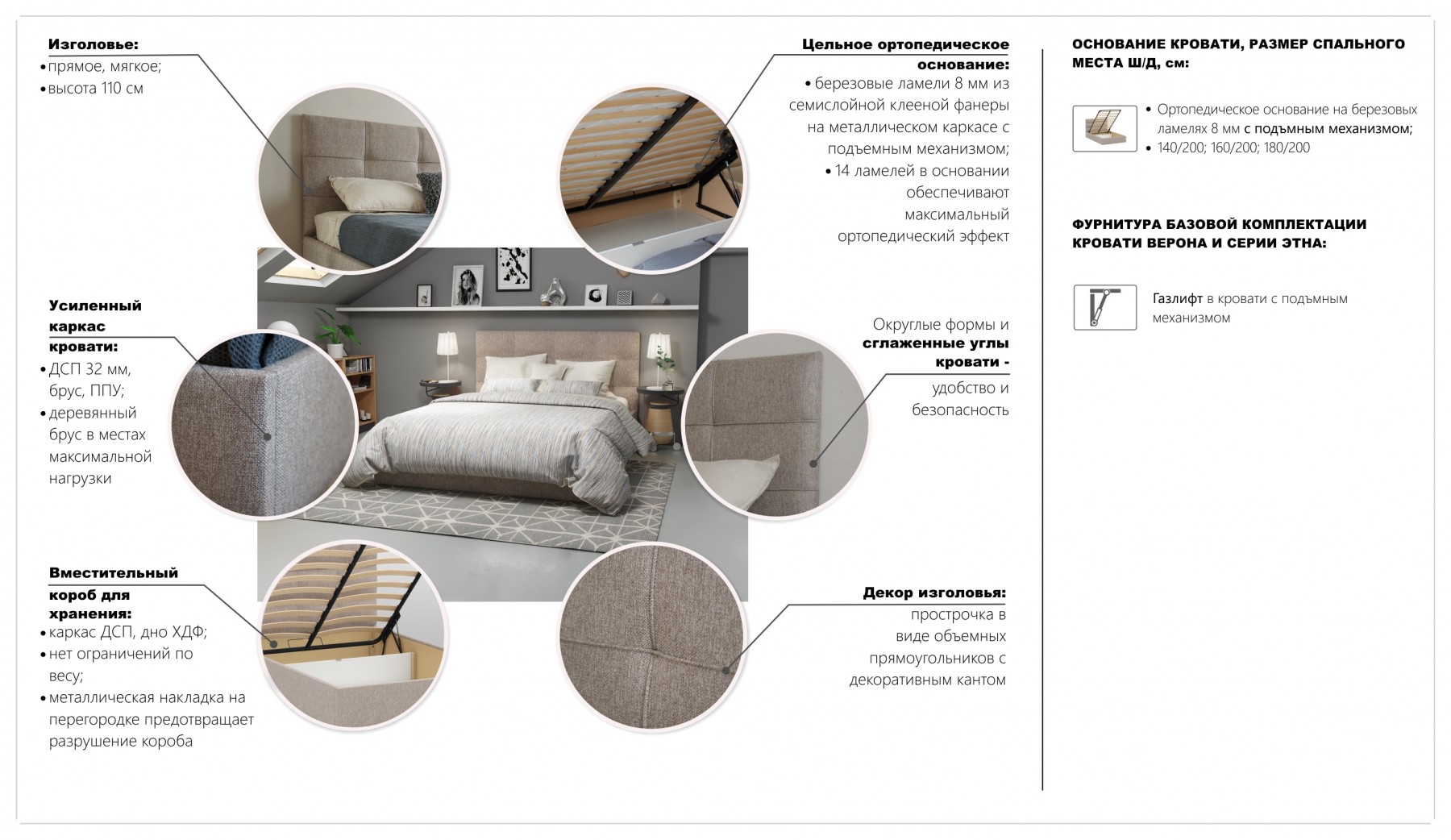 Универсальная современная кровать "Вена" с мягким изголовьем, строгим силуэтом и аккуратным декором станет акцентом интерьера. Отстрочка кантом в сочетании с утяжкой создает дополнительный объем, подчеркивает ее выразительность. Надежность и долговечность конструкции обеспечиваются за счет усиленного каркаса, а ортопедическое основание равномерно распределяет нагрузку по всему спальному месту, обеспечивая здоровый сон. Вместительный ящик для хранения под матрасом удобен для хранения постельных принадлежностей. Компактные габариты позволяют установить кровать в спальнях с ограниченным пространством, оптимизируя его использование.