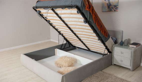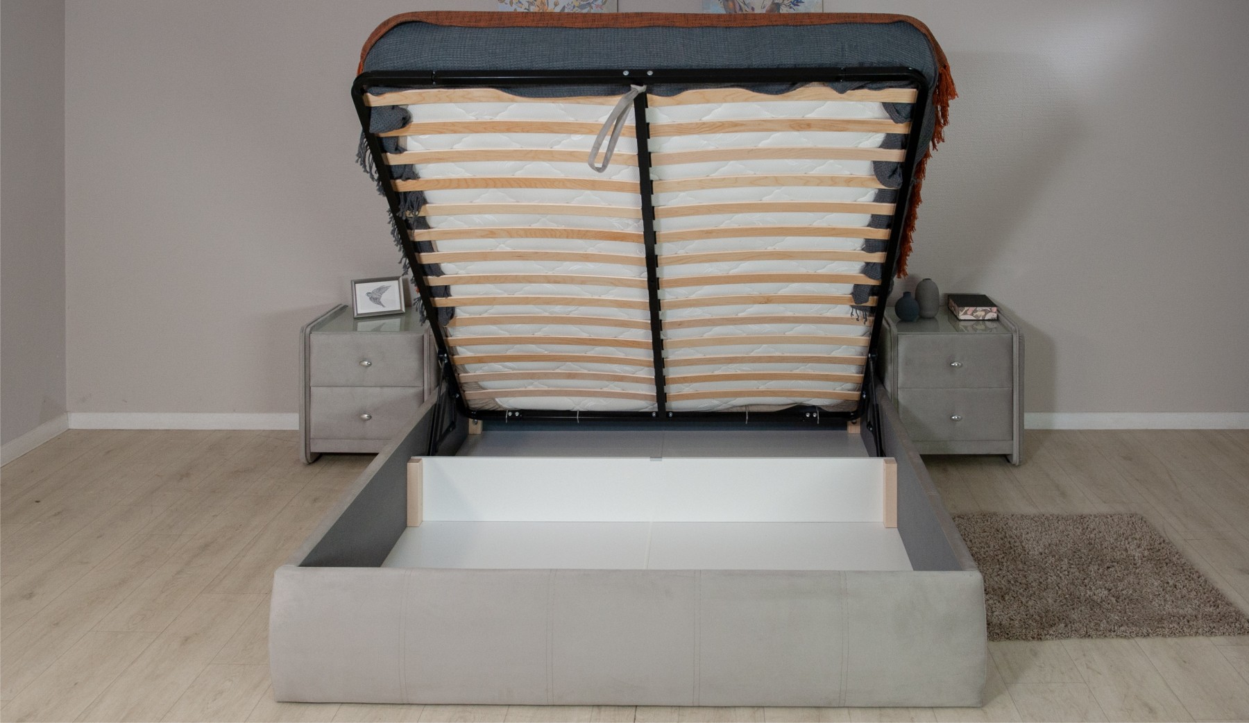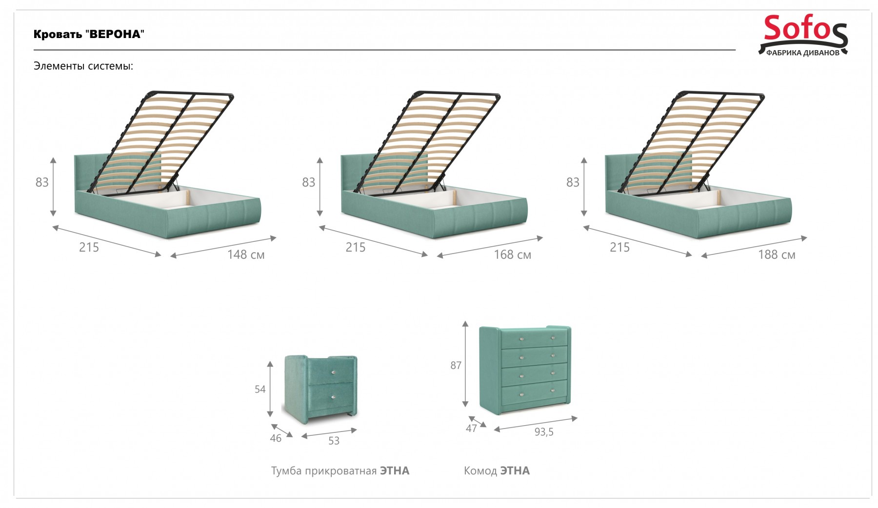Кровать "Верона", воплощение гармонии и сдержанной красоты. Изголовье, декорированное строгими прямоугольниками, оживляет интерьер спальни, а вертикальная строчка на боковинах и изножье подчеркивает элегантность форм. Подъемный механизм в бельевом ящике упрощает хранение постельного белья. Прочный металлический каркас в сочетании с ортопедическим основанием гарантирует спокойный отдых и здоровый сон.