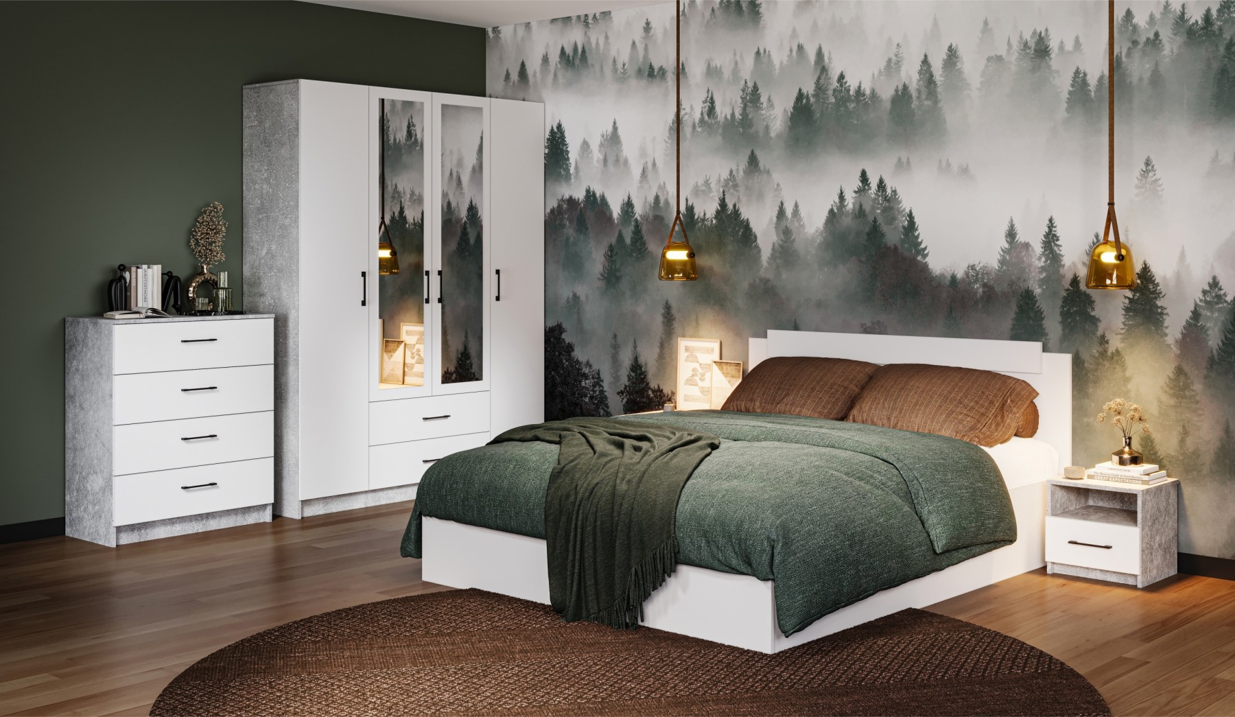 Спальня "Чикаго" - это сочетание минималистичного дизайна, комфорта и функциональности. Выигрышные комбинации свежих нейтральных оттенков создают воздушную атмосферу и позволяют легко менять интерьер. Множество модулей в едином стиле создают систему хранения и освобождают пространство, а прикроватные тумбы и вместительный комод обеспечивают быстрый доступ к содержимому. Антресоли эффективно используют вертикальное пространство и увеличивая площадь хранения.