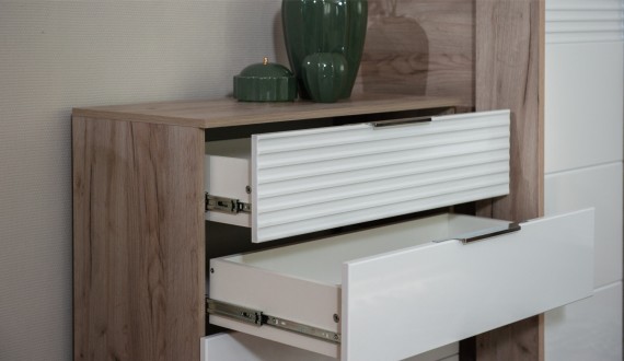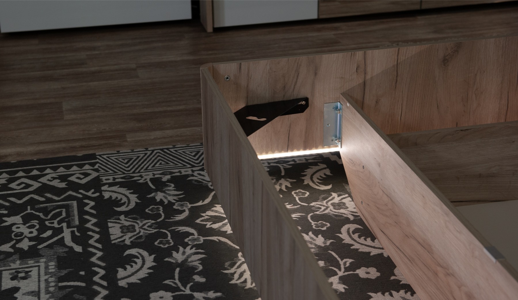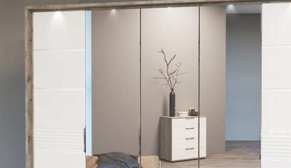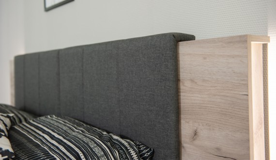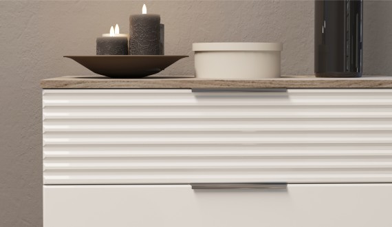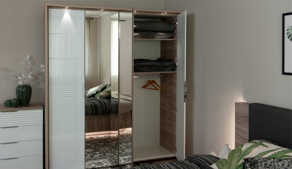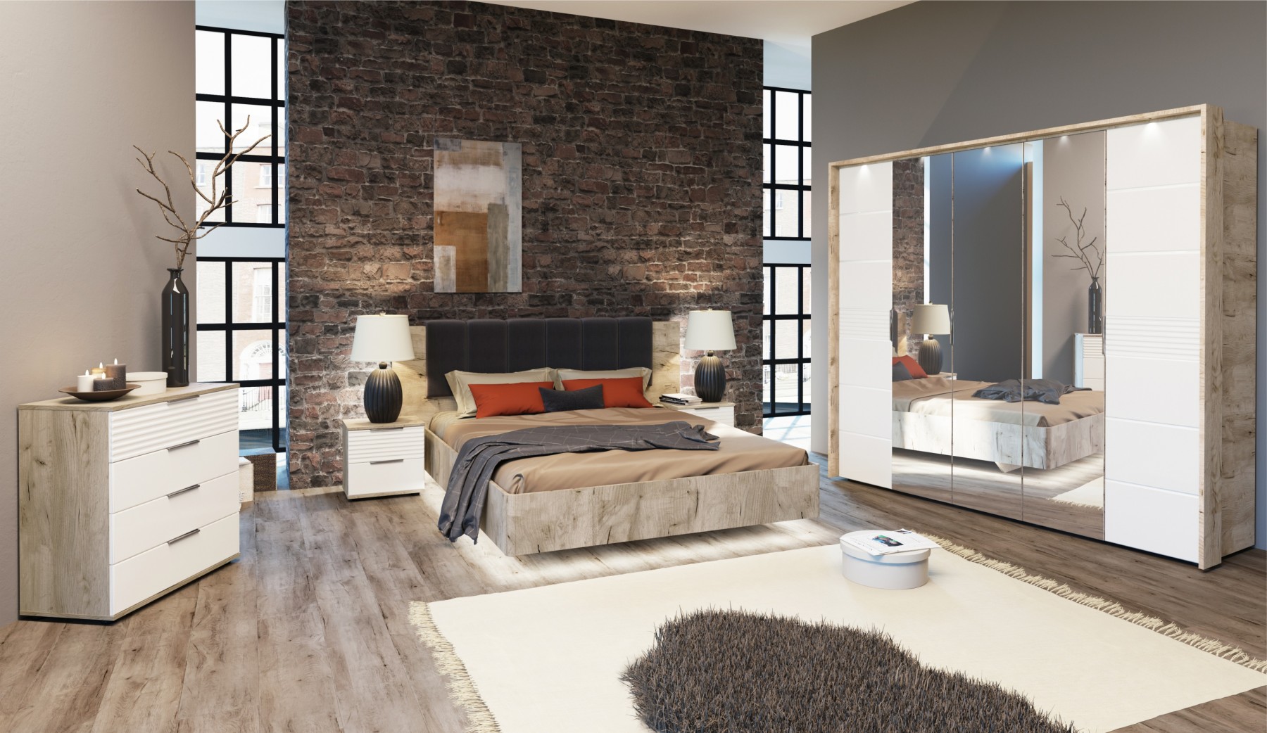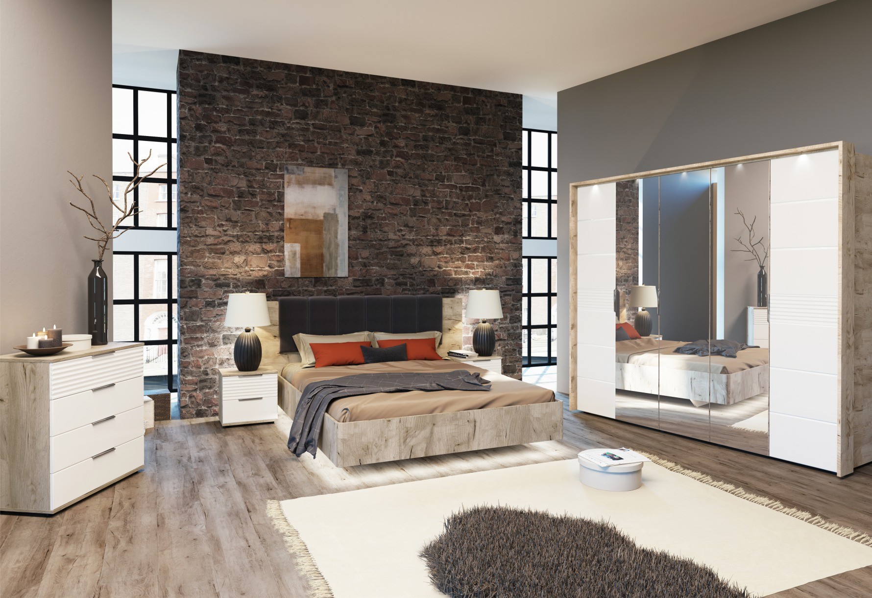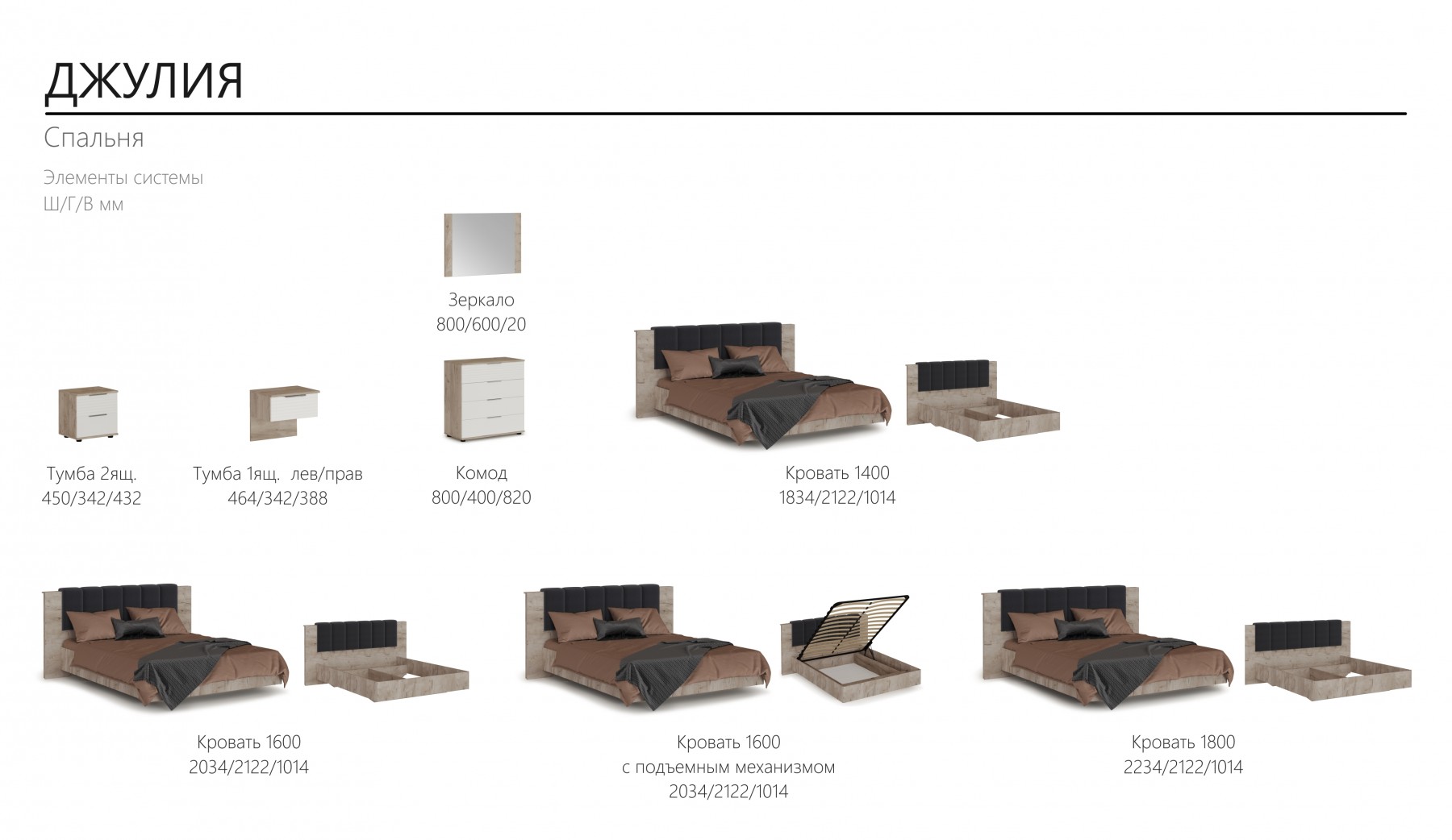 Спальня Джулия – новинка европейского рынка! Белый глянец на фрезерованных фасадах спальни отражает даже малое количество естественного света, делая ее намного уютней и светлей. Корпус из ЛДСП австрийского концерна Кроношпан с декором дуб крафт серый - цвет и текстура натурального дерева. Центральный элемент - двуспальная словно парящая в воздухе кровать, выполненная в простых и лаконичных формах с подсветкой снизу - самый актуальный дизайн современной спальни. Это свежее стилистическое решение, способное удивить родственников, друзей. Светодиодная подсветка служит дополнительным освещением в ночное время и создает романтическое настроение. Комбинированное мягкое изголовье с подсветкой - дополнительный комфорт, на него удобно опираться. Большой вместительный шкаф с точечной подсветкой и рамкой из ЛДСП 22мм. Современные торцевые ручки очень удобны в эксплуатации и надежно крепятся к фасадам.