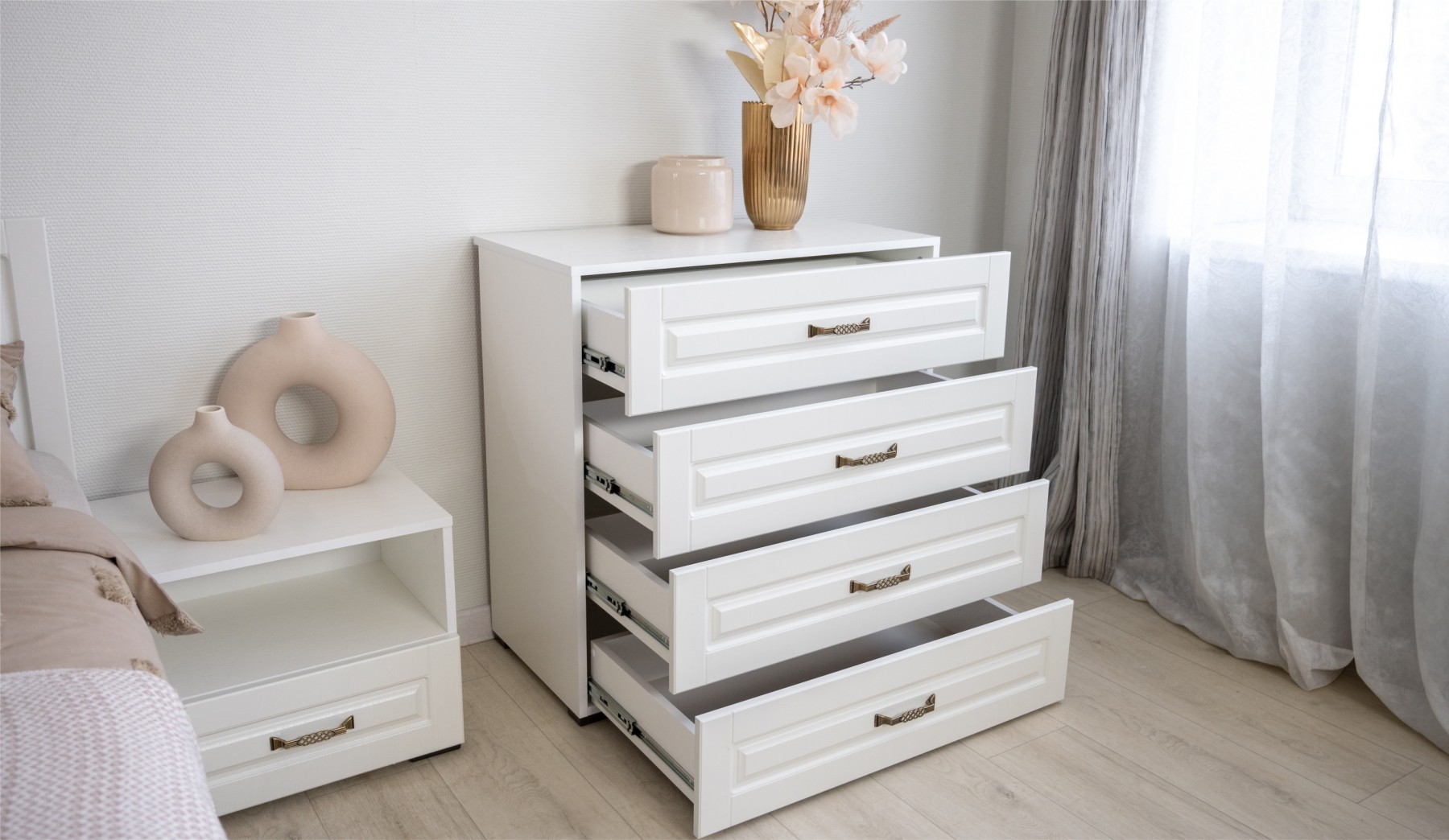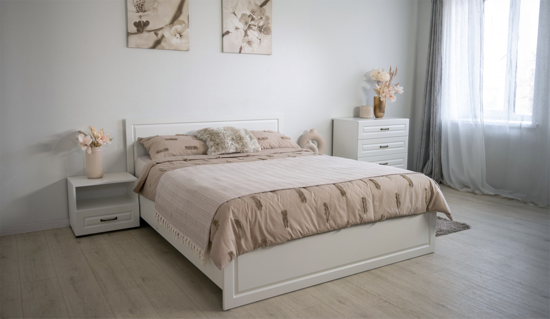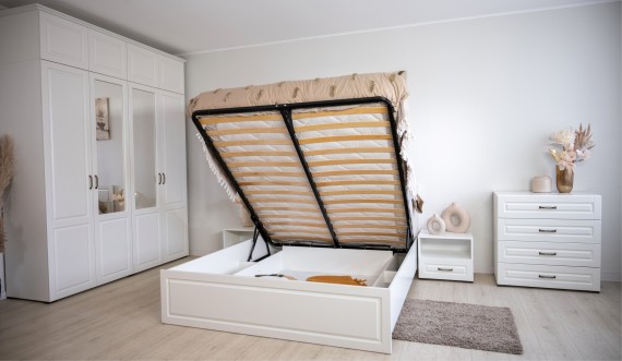 Функциональная спальня в стиле неоклассики отвечает последним трендам дизайна мебели и актуальна во все времена. Фрезерованные фасады из МДФ с текстурой дерева, фигурный карниз и стильные металлические ручки цвета бронзы придают изысканность спальне, а белоснежный цвет декора расширяет пространство, добавляет воздушности и свежести. Система Лацио состоит из множества отдельных модулей, благодаря чему можно легко подобрать мебель для комнаты любого размера и нужного вам функционала. Антресоли для шкафов позволяют рационально использовать пространство, максимально увеличивают высоту и вместимость модуля.