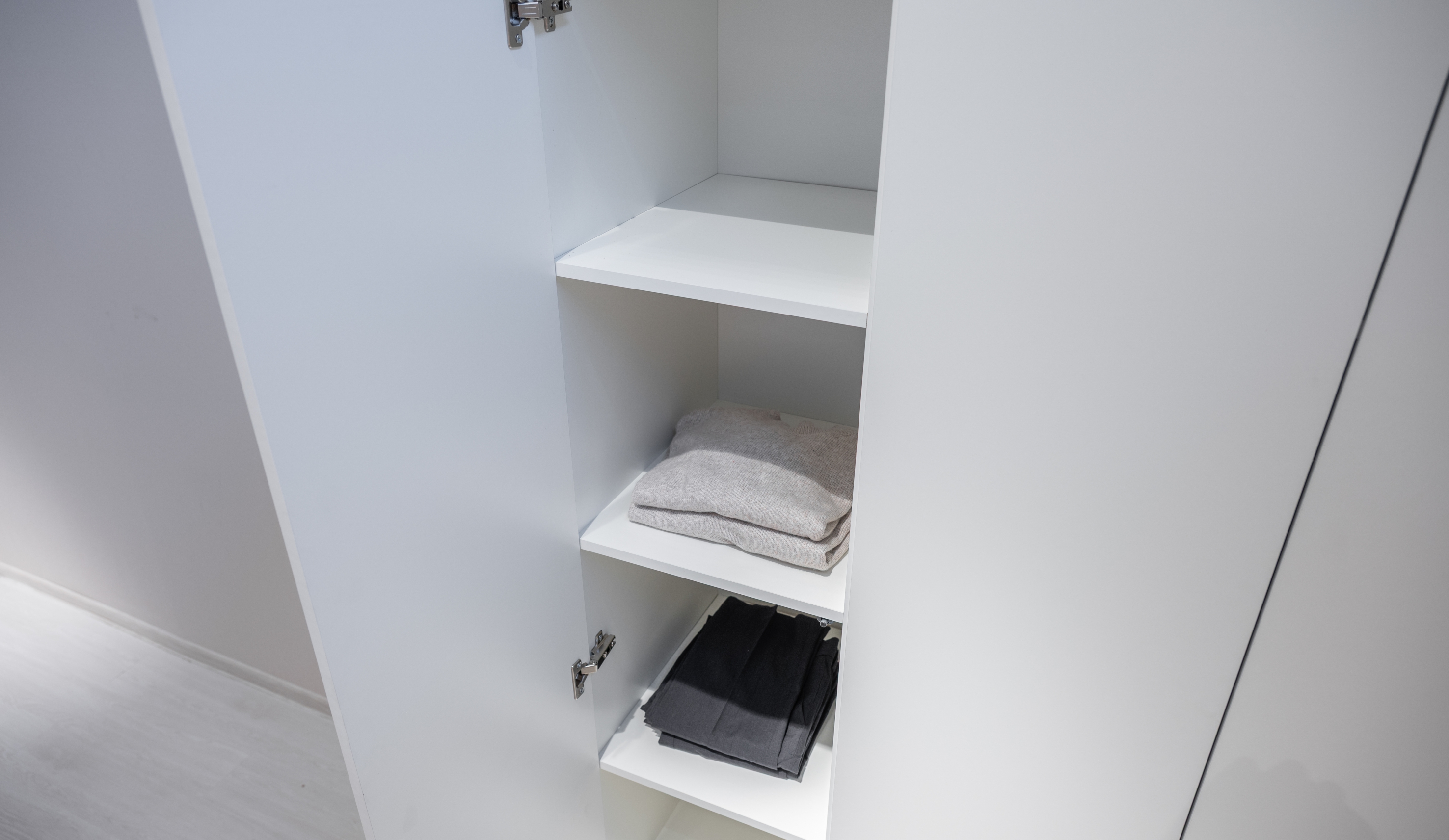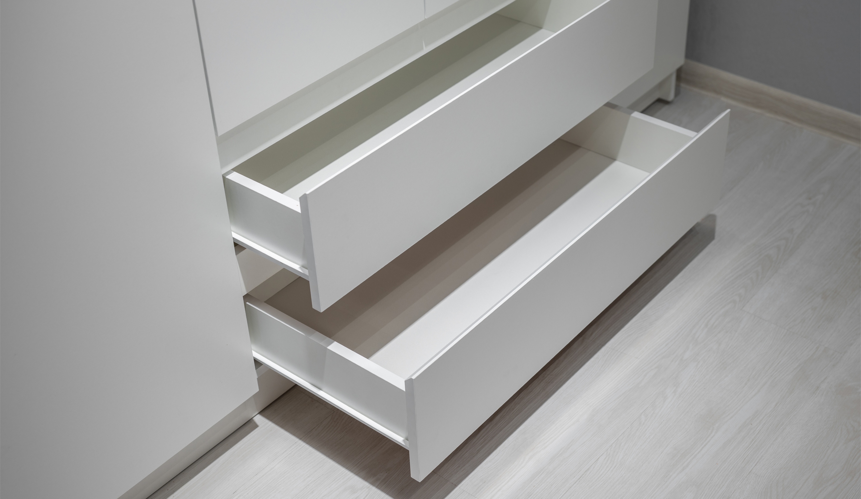 Система комодов на роликовых направляющих обеспечивает лёгкое открытие и увеличивает полезное пространство, помогая поддерживать порядок. Доступные варианты: