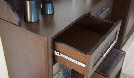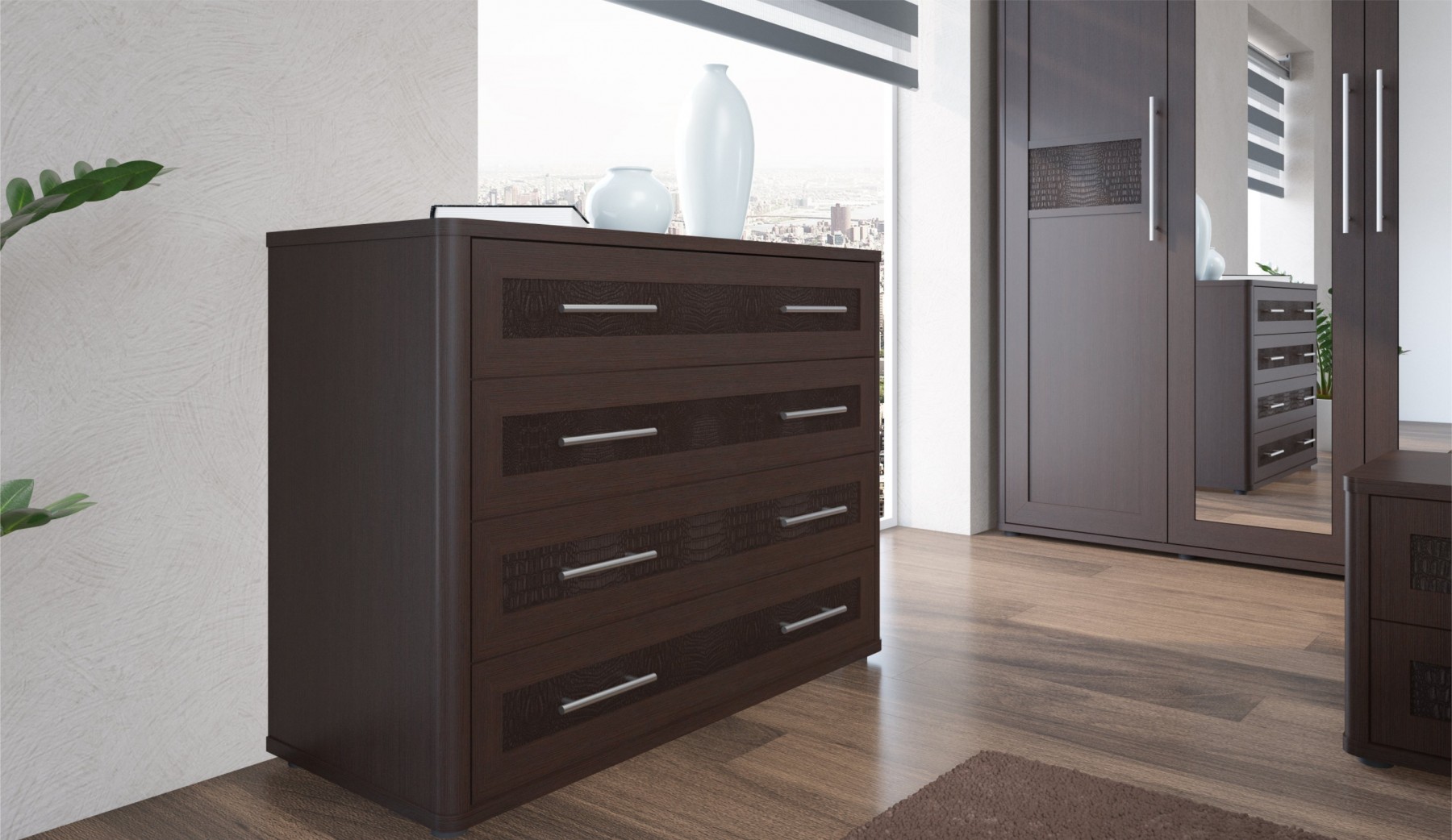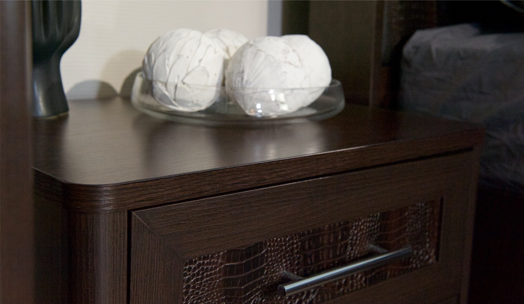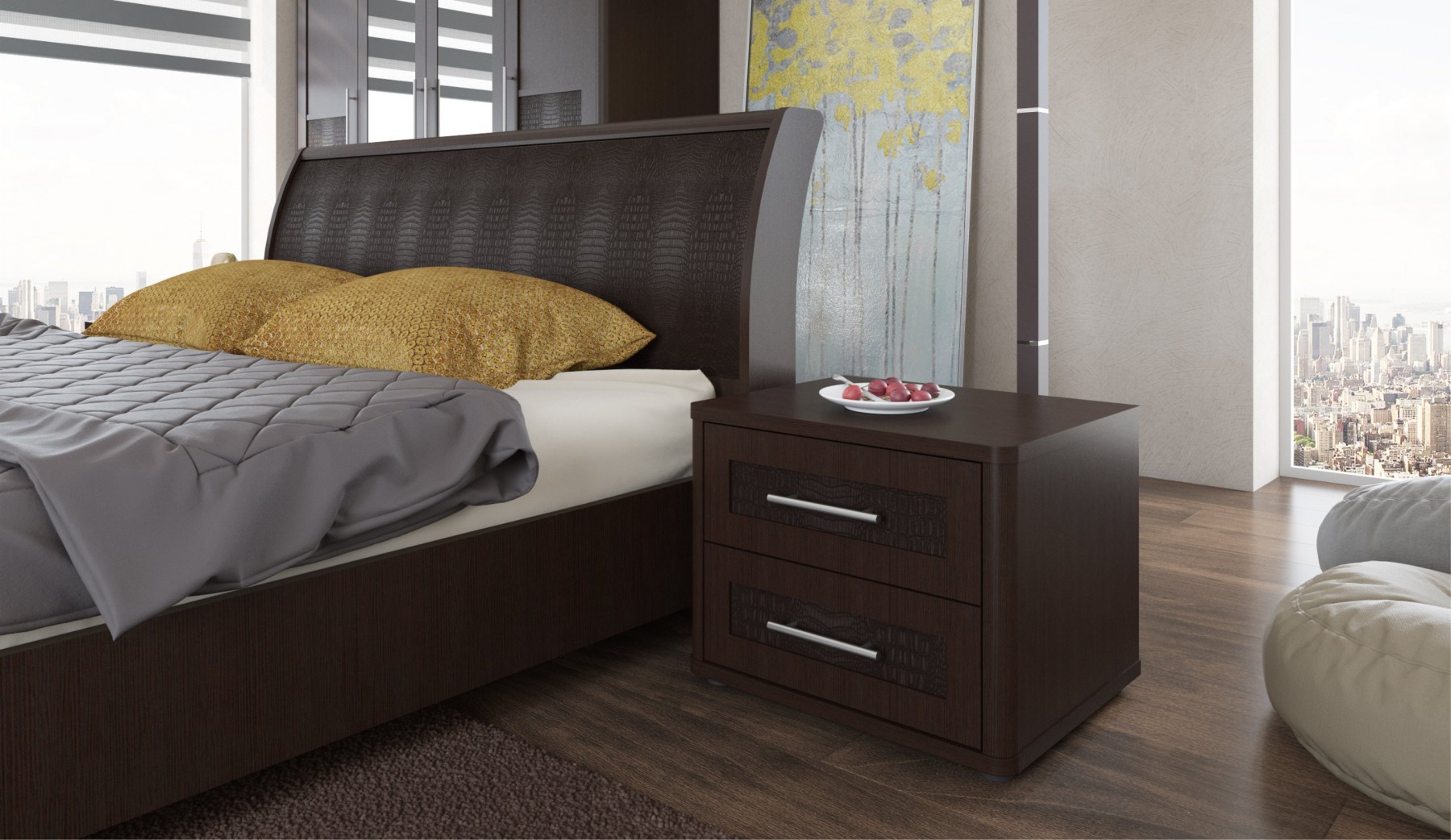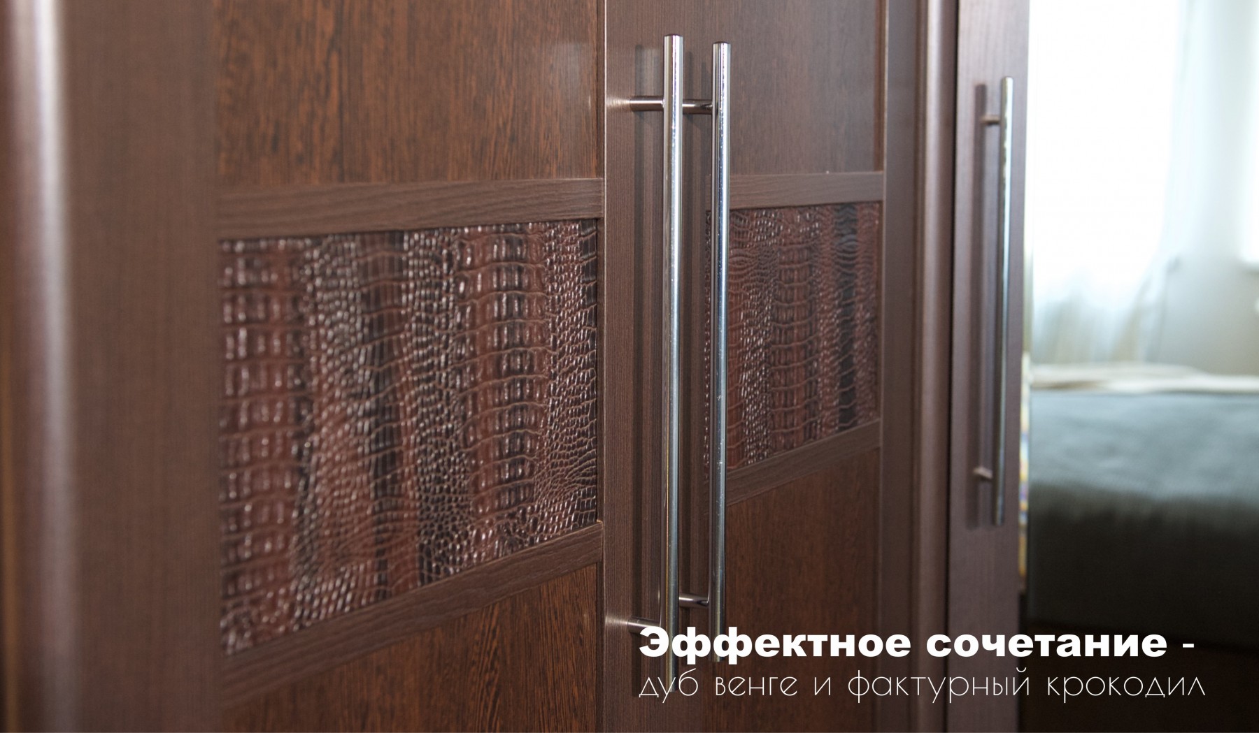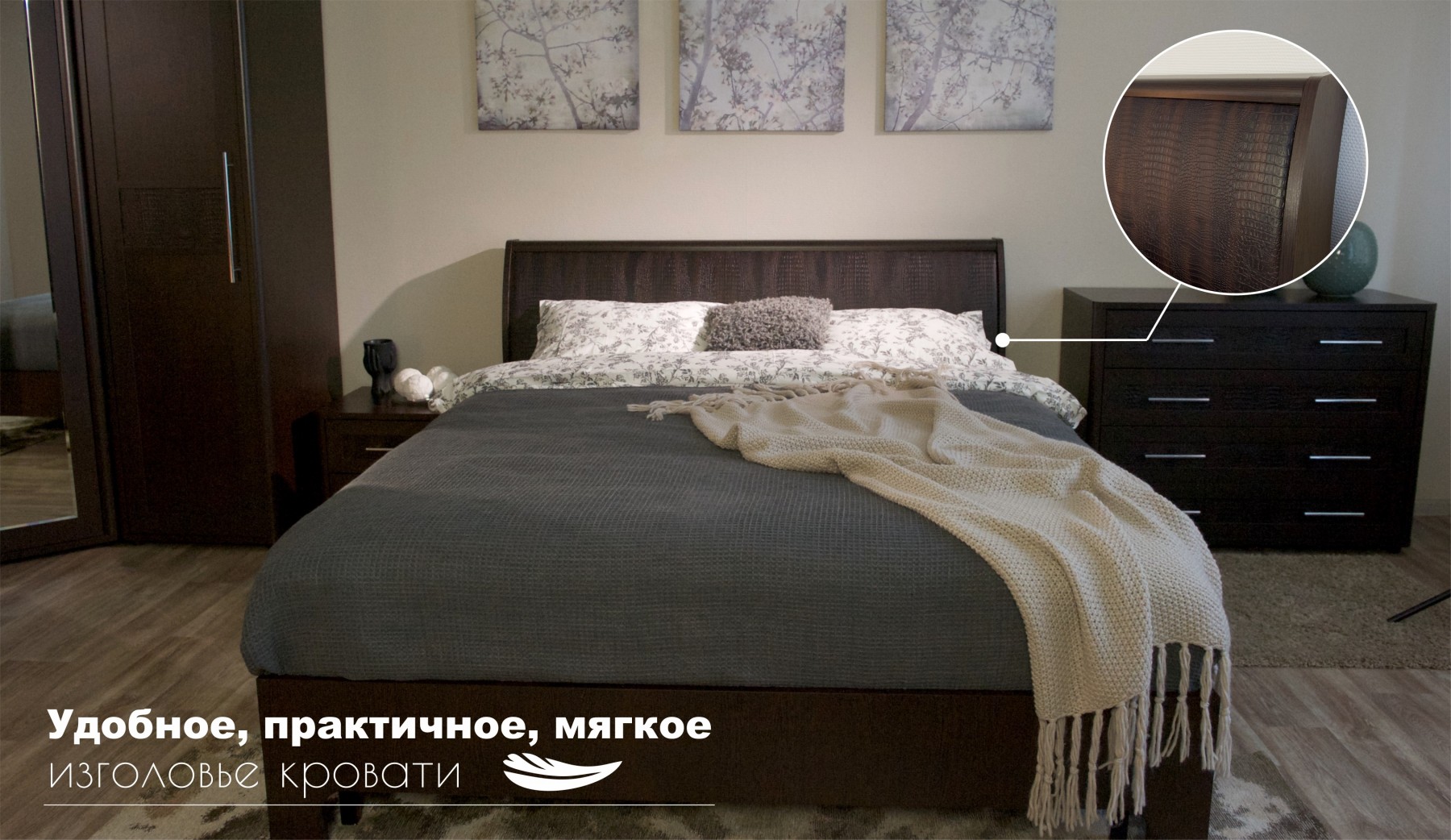 Спальня Токио идеальное сочетание лаконичности японского стиля и функциональности, необходимой для нашего климата. Темный цвет Венге, предельно простые линии, плавные, без острых углов контуры внешних очертаний, эффектные вставки из эко-кожи - все это отражение базовых смыслов фен-шуй. По фен-шуй отсутствие острых углов исключает скопление негативной энергии, направленной на людей, что особенно важно для спальни, где мы беззащитны и проводим основное время нахождения дома. Система Токио разрабатывалась специалистами фен-шуй и в полной мере учитывает все базовые принципы, создавая своими формами гармоничное пространство в комнате, а кожа крокодила, как известно, притягивает деньги. Несмотря на то, что японский стиль ассоциируется с минимализмом Токио - это полноценная и объемная система хранения, а широкий выбор модулей позволяет организовать хранение под любые нужды.