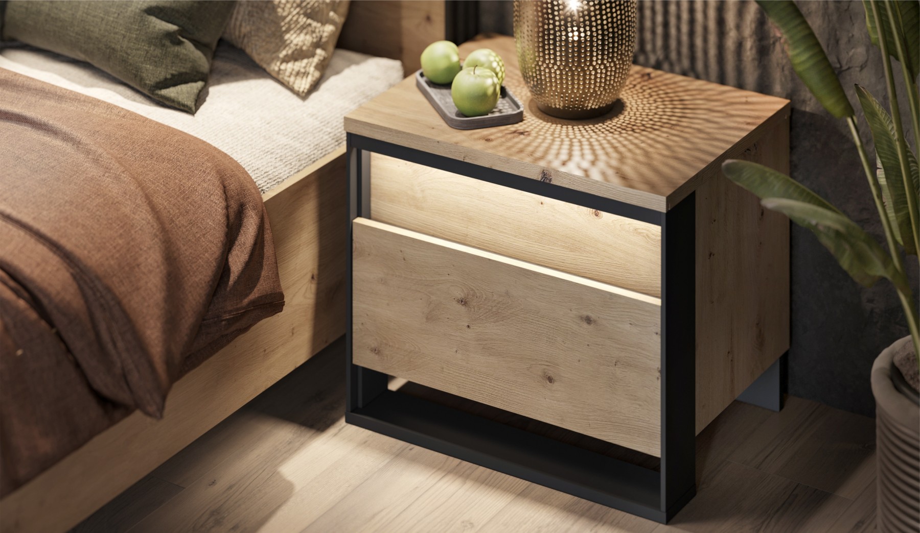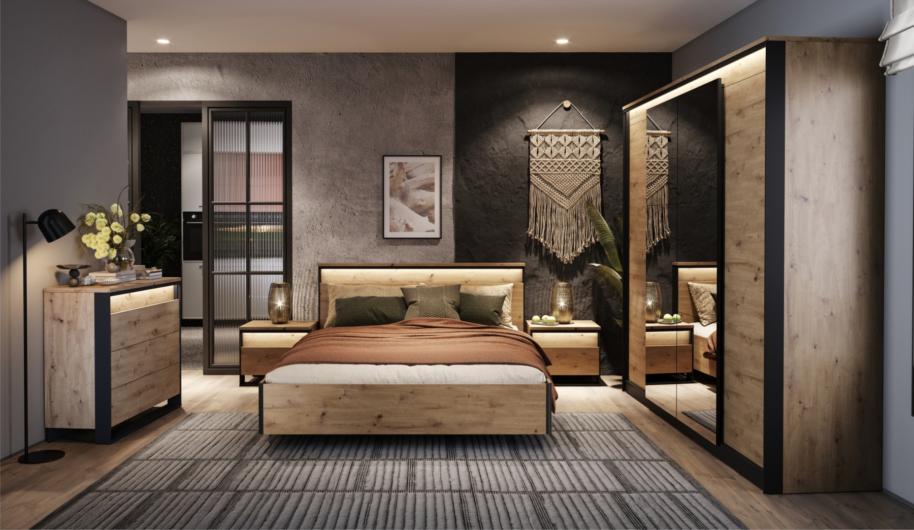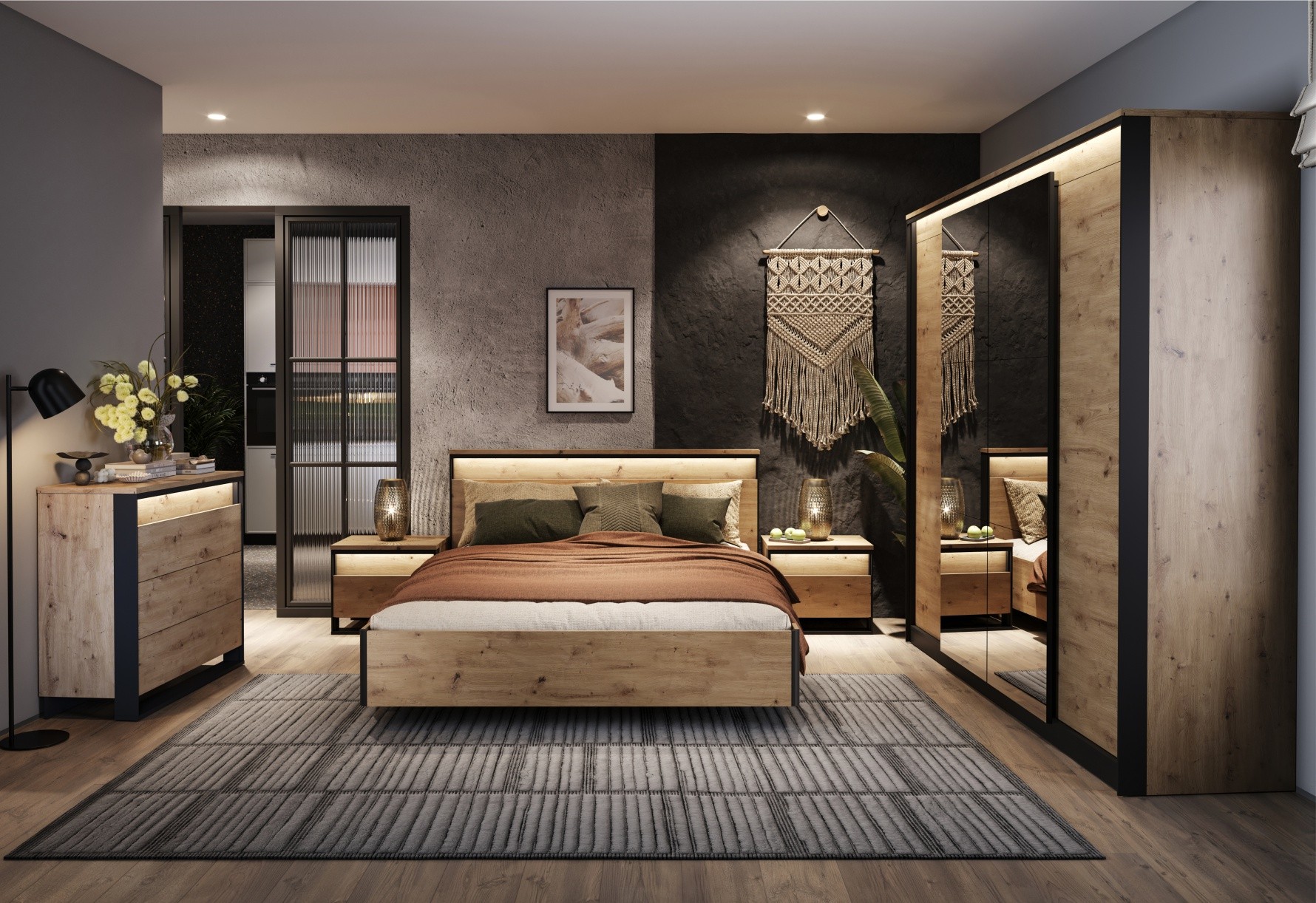 Лофт-спальня с натуралистичной текстурой дерева