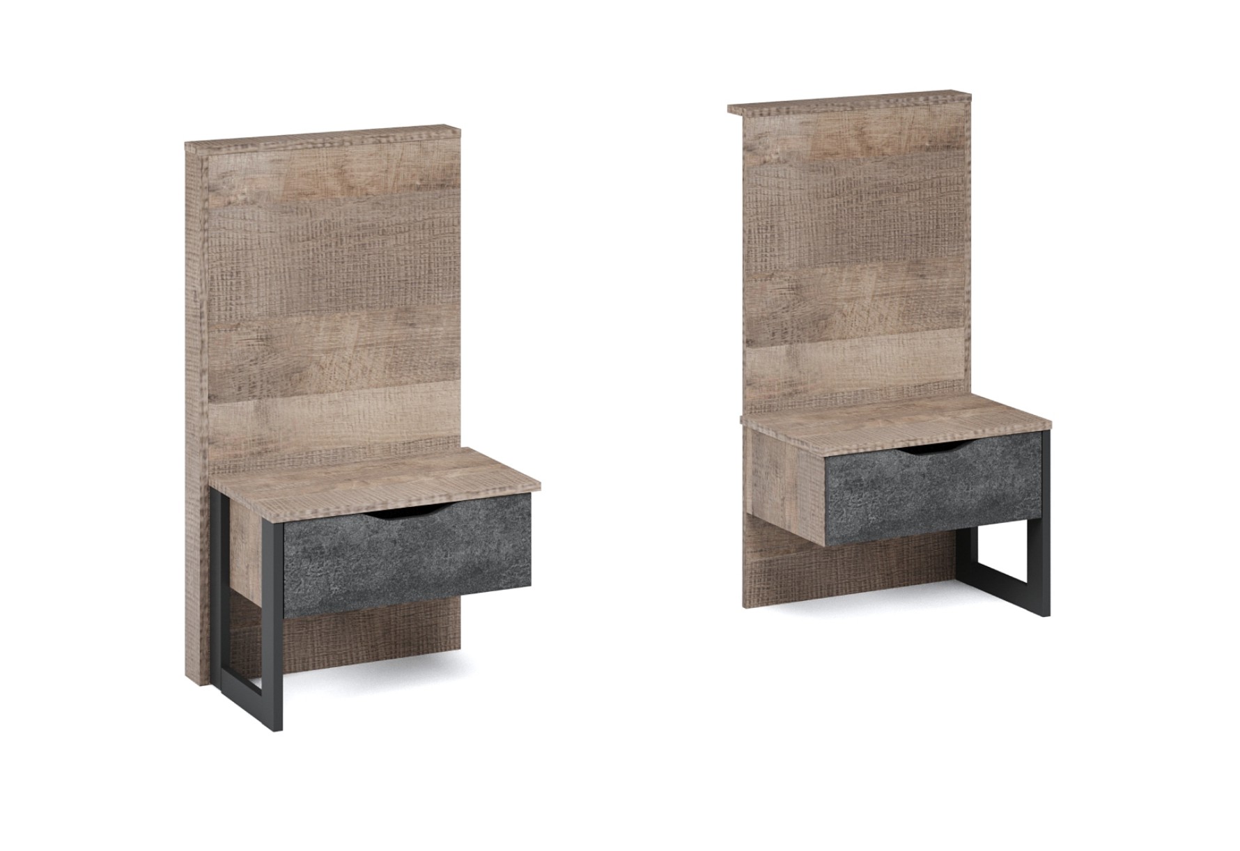 Прикроватная тумба Стокгольм отличное дополнение к спальне в стиле лофт, сканди, экоминимализм. Особенность дизайна - это сочетание реалистичных по цвету и тактильности трендовых декоров, которые соответствуют последним городским тенденциям. "Дуб Гранж" привлекает имитацией вручную обработанного дерева и выразительной зернистой текстурой, характерной формой досок. Стильный серый цвет "Железного камня" с металлическими разводами и новая текстура состаренной штукатурки в сочетании с гладкостью металла вносят индустриальный колорит. Оригинальные ножки-опоры из МДФ контрастного цвета придают изюминку интерьеру. Тумба крепится к кровати - это создает визуальную целостность и иллюзию парения. Выдвижной ящик на телескопических направляющих поместит в себя все вещи, которые важно иметь под рукой - светильник, телефон, книга. Отсутствие лицевой фурнитуры подчеркивает минимализм и геометрию модуля. Идеально компонуется со всеми модулями системы Стокгольм.