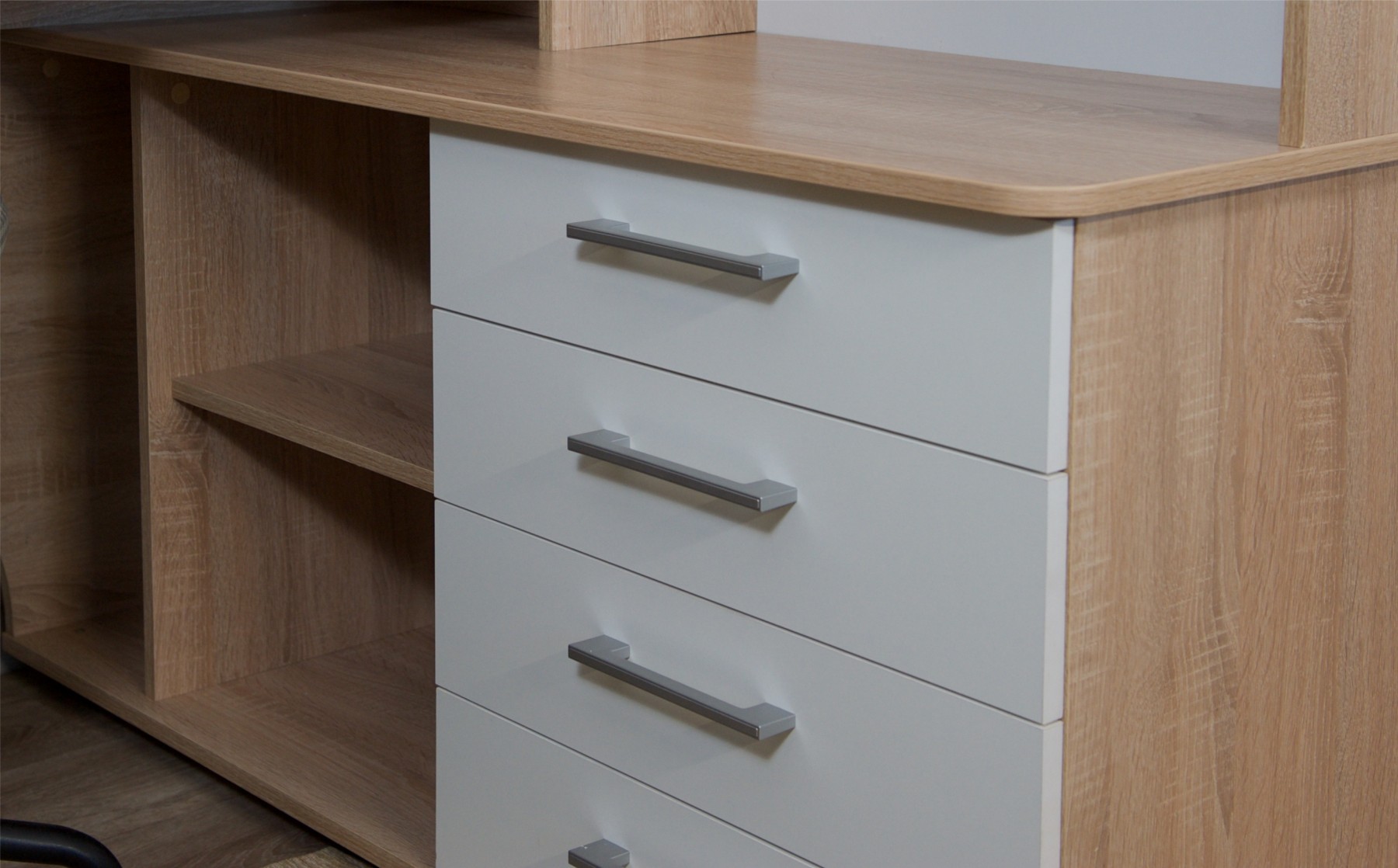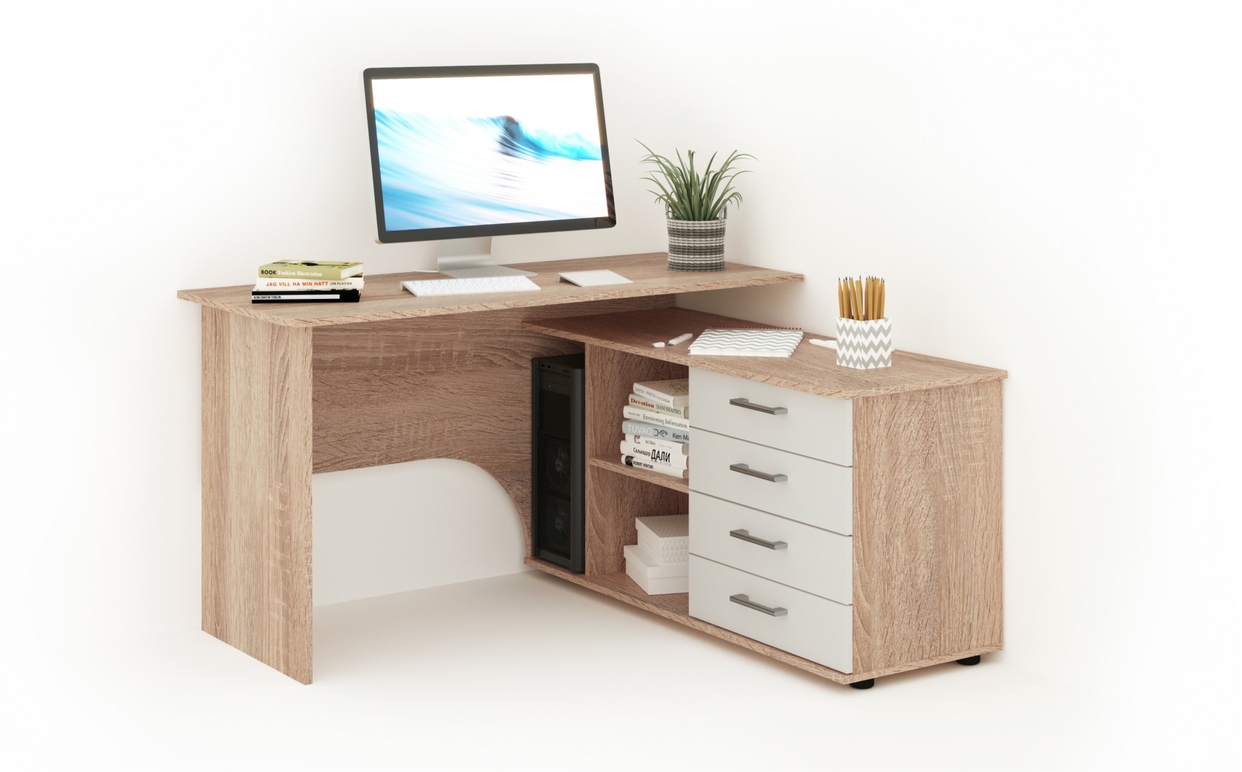 Стол письменный угловой – удобное рабочее место для студента, школьника, отличное решение для кабинета с интерьером в скандинавском стиле. На широкой столешнице легко поместится монитор, клавиатура и документы, на угловой части можно разместить оргтехнику. В столе выделено место для системного блока и для письменных принадлежностей. Его можно укомплектовать надставкой с множеством полок для папок, книг и декора. В столах системы Гарвард мягкие, удобные для опирающихся рук края, с кромкой в 2мм, а также, скруглённые углы столешницы. Корпус выполнен в теплом древесном цвете светлого дуба с приятной на ощупь фактурой, фасады - белые матовые. Нейтральные оттенки мебели позволяют легко вписаться уже в готовый интерьер. Кроме этого, столы можно укомплектовать другими предметами мебели из ассортимента Мебель Шара в аналогичном стиле.
